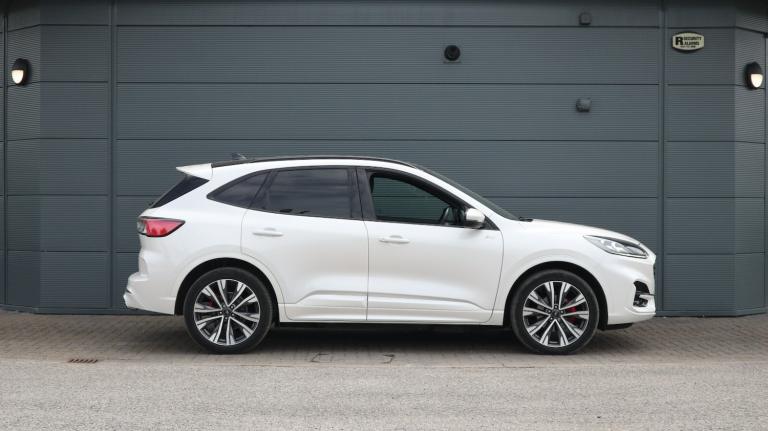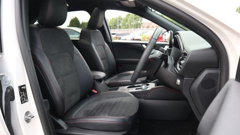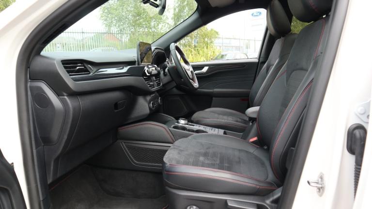 .Ford Kuga 2.5 PHEV ST-Line X Edition 5dr CVT. 12.3'' digital colour instrument cluster, Ford easy fuel, Ford SYNC 3 with 8'' TFT LCD touchscreen, App Link, andriod auto/apple carPlay, emergency assistance and navigation with Ford pass connect, Front and rear parking sensors, Geo awareness, Hands free power tailgate, Lane keeping aid with lane departure warning, Power assist steering, Rear view camera, Selectable drive modes, Service interval indicator, 3-Pin Home charge cable (230V/16A Domestic socket), 3.7 kW monophase on board charger, Sports suspension, Twist beam rear suspension, B&O premium audio system with 10 speakers and subwoofer, 2 USB ports, DAB radio/CD, Auto headlamps with high and low beam, Black roof rails, Day/night rear view mirror,.12.3'' digital colour instrument cluster, Ford easy fuel, Ford SYNC 3 with 8'' TFT LCD touchscreen, App Link, andriod auto/apple carPlay, emergency assistance and navigation with Ford pass connect, Front and rear parking sensors, Geo awareness, Hands free power tailgate, Lane keeping aid with lane departure warning, Power assist steering, Rear view camera, Selectable drive modes, Service interval indicator, 3-Pin Home charge cable (230V/16A Domestic socket), 3.7 kW monophase on board charger, Sports suspension, Twist beam rear suspension, B&O premium audio system with 10 speakers and subwoofer, 2 USB ports, DAB radio/CD, Auto headlamps with high and low beam, Black roof rails, Day/night rear view mirror, Front LED fog lamps, Large rear spoiler, LED daytime running lights, LED rear lights, Power folding heated door mirrors with puddle lights, Power front/rear windows with global close, Power opening panoramic roof, Privacy glass, Quickclear heated windscreen, Rear side wing doors, Rear wiper, ST Line body styling kit with unique front and rear fascia and bumper, rear painted diffuser, front painted skid plates, dark mesh upper grille, ST Line front scuff plates, Third brake light, Twin exhausts, 10 way power adjustable drivers seat, 2nd row sliding seats with 60:40 split, 8 way manual passenger seat including lumbar support and height adjust, Alloy pedals, Centre console with electronic parking brake, Dark headlining and pillars, Dual electronic automatic temperature control, Flat bottomed leather steering wheel in sensico with red stitching, Front and rear head restraints, Heated passenger and driver seats, Heated rear seats, Heated steering wheel, Partial premium touch sensico leather upholstery with black