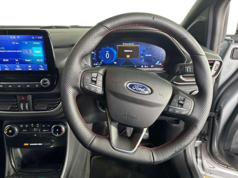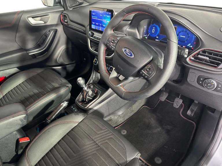 .Key Features: Rear parking sensor Wireless charging pad with electronic air temperature control (EATC) B&O Premium Audio system + Ford SYNC 3 navigation pack Cruise Control with Intelligent Speed Assist This 2022 Ford Puma ST-Line X boasts exceptionally low mileage for its age, having covered just 9176 miles. As a Ford manufacturer approved vehicle, it offers peace of mind, featuring a 1.0 litre petrol hybrid engine and meeting Euro 6 emission standards. This ST-Line X model comes equipped with desirable notable features, including Electronic Air Temperature Control for effortless climate management and a Driver Assistance Pack that incorporates automatic headlights for enhanced convenience and safety. Experience impressive performance with this Puma, achieving 0-62mph in just 8.9 seconds, a testament to its dynamic capabilities. Its fuel economy is a standout highlight, delivering an excellent 51 miles per gallon, which indicates it is more economical than many similar vehicles. Furthermore, its low CO2 emissions further demonstrate its efficiency and environmental consideration, making it a smart choice for both your wallet and the planet..Driver impairment monitor, Emergency call service, Ford easy fuel, Full digital 12.3'' instrument cluster, Lane keeping aid with lane departure warning, Power assist steering, Power start button, Rear parking sensor, Selectable drive modes(Normal, Eco, Sport, Slippery and Trail), Speed sign recognition, Sport suspension, Automatic headlights with auto high beam, Automatic rain sensing wipers, Front fog lamps, LED daytime running lights, LED rear lamps, Power foldable heated door mirrors with puddle lamps, Privacy glass to side rear windows and tailgate glass, Quickclear heated windscreen, Rear side wing doors, Rear wiper, ST-Line body styling kit with unique grille and large body colour rear spoiler, Third brake light, 3 seat bench in 2nd row, Centre console with armrest and stowage, Ford megabox extended bootspace, Front and rear head restraints, Front floor mats, Manual 4 way driver seat adjust with lumbar adjustment, Manual 4 way passenger seat with lumbar seat adjustment, Sensico partial premium upholstery, Single front passenger seat, ST-Line flat bottomed sensico leather steering wheel with leather handbrake and aluminium gear knob, Wireless charging pad with electronic air temperature control (EATC), B&O Premium Audio system + Ford SYNC 3 navigation pack - Puma, 3 rear seatbelts, Child safety lock,