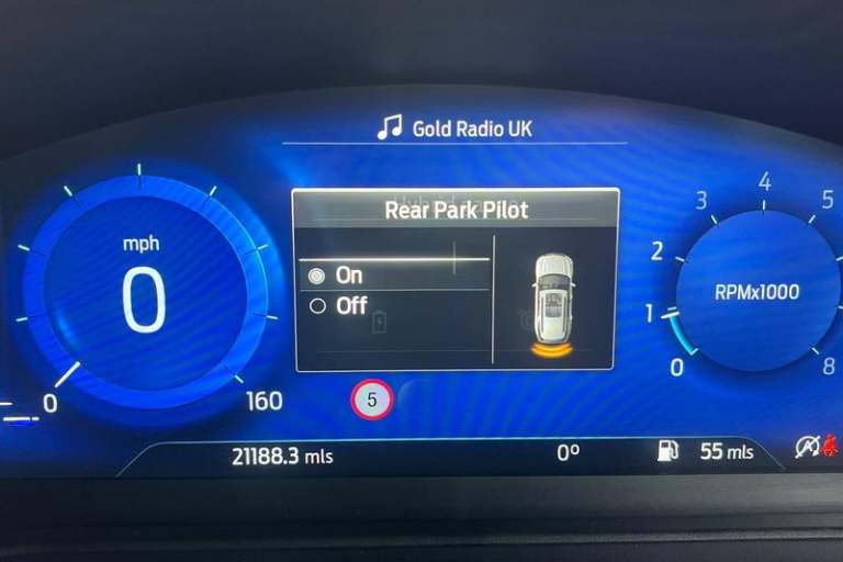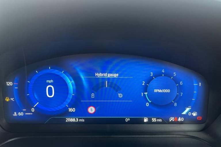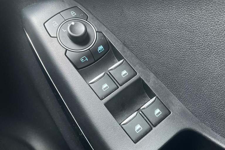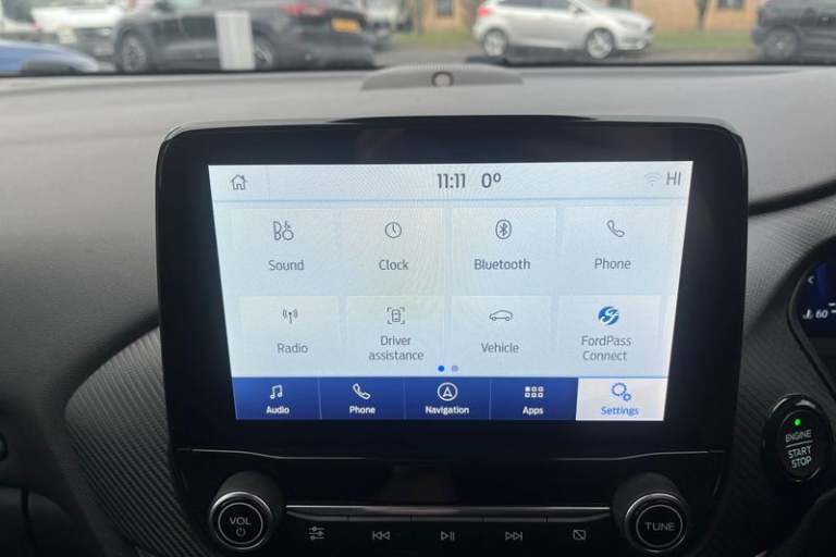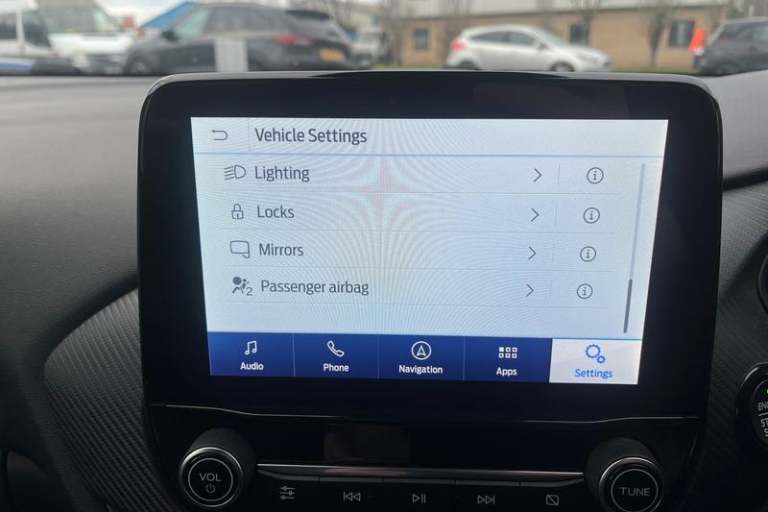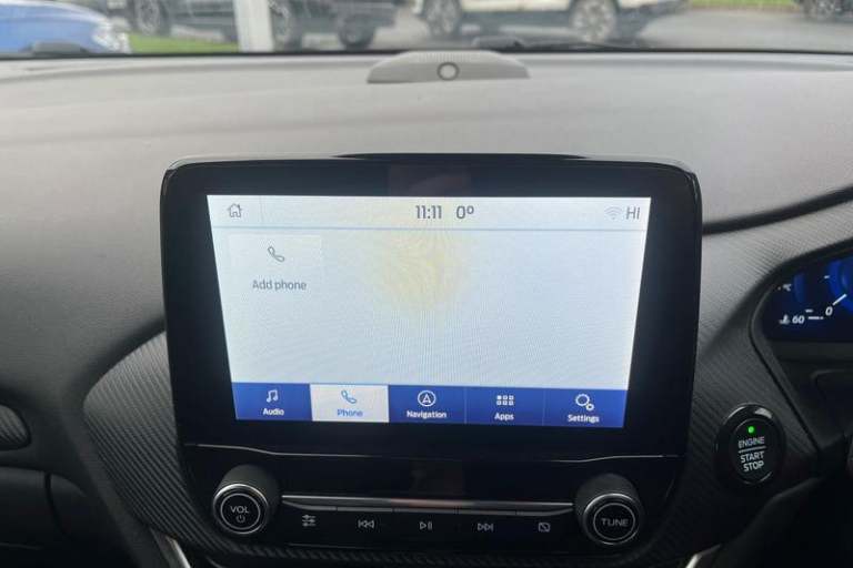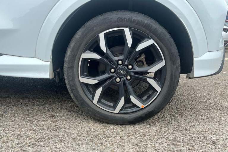 Driver impairment monitor, Emergency call service, Ford easy fuel, Full digital 12.3 instrument cluster, Lane keeping aid with lane departure warning, Power assist steering, Power start button, Rear parking sensor, Selectable drive modes(Normal, Eco, Sport, Slippery and Trail), Speed sign recognition, Automatic headlights with auto high beam, Automatic rain sensing wipers, Front fog lamps, LED daytime running lights, LED rear lamps, Power foldable heated door mirrors with puddle lamps, Privacy glass to side rear windows and tailgate glass, Quickclear heated windscreen, Rear side wing doors, Rear wiper, ST-Line body styling kit with unique grille, Third brake light, 3 seat bench in 2nd row, Centre console with armrest and stowage, Ford megabox extended bootspace, Front and rear head restraints, Front floor mats, Manual 4 way driver seat adjust with lumbar adjustment, Manual 4 way passenger seat with lumbar seat adjustment, Sensico partial premium upholstery, Single front passenger seat, ST-Line flat bottomed sensico leather steering wheel with leather handbrake and aluminium gear knob, Wireless charging pad with electronic air temperature control (EATC), 3 rear seatbelts, Child safety lock, Electronic stability control (ESC) and hill start assist, Pedestrian/cyclist detection & post-collision braking, Pre collision assist system, Tyre pressure monitoring system (TPMS)