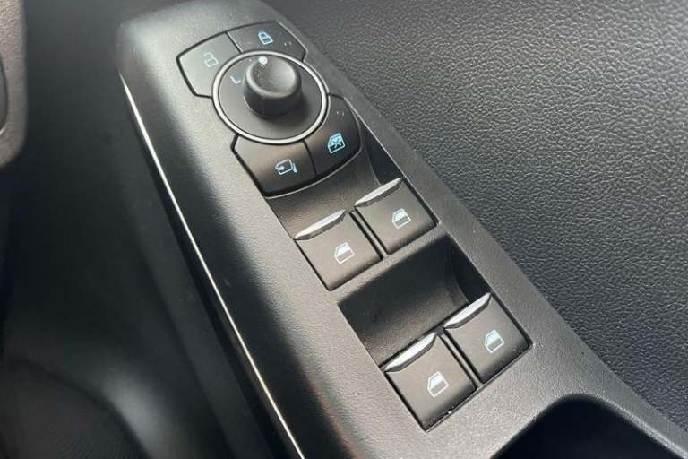 Driver impairment monitor, Emergency call service, Ford easy fuel, Lane keeping aid with lane departure warning, Power assist steering, Power start button, Rear parking sensor, Selectable drive modes(Normal, Eco, Sport, Slippery and Trail), Speed sign recognition, Automatic headlights with auto high beam, Automatic rain sensing wipers, LED rear lamps, Power foldable heated door mirrors with puddle lamps, Projector headlamps with LED day time running lights and front fog lamps, Quickclear heated windscreen, Rear side wing doors, Rear wiper, Third brake light, 3 seat bench in 2nd row, Centre console with armrest and stowage, Electronic automatic temperature control (EATC), Ford megabox extended bootspace, Front and rear head restraints, Front floor mats, Manual 2 way passenger seat adjustment, Manual 4 way driver seat adjust with lumbar adjustment, Sensico leather steering wheel/gear knob/handbrake, Single front passenger seat, Titanium cloth upholstery, 3 rear seatbelts, Child safety lock, Electronic stability control (ESC) and hill start assist, Pedestrian/cyclist detection & post-collision braking, Pre collision assist system, Tyre pressure monitoring system (TPMS)
