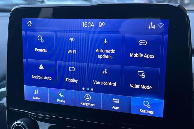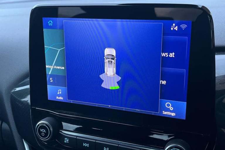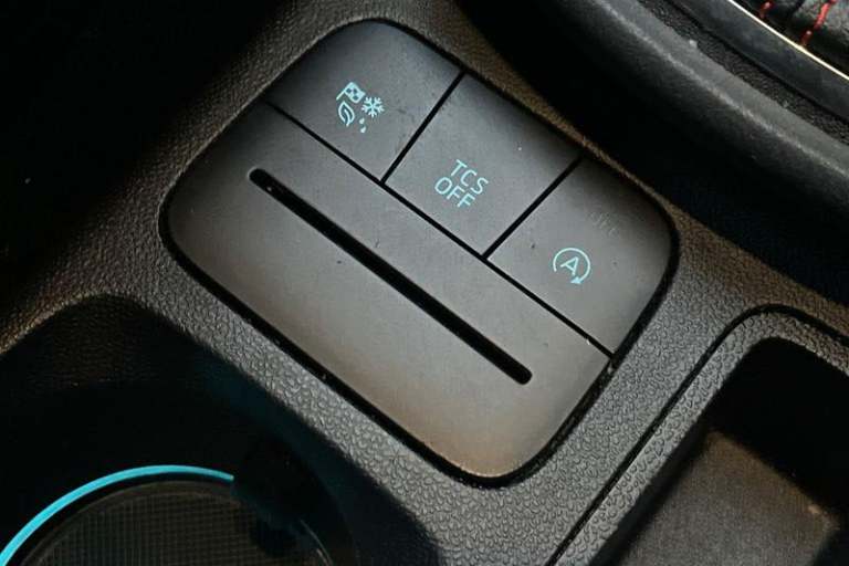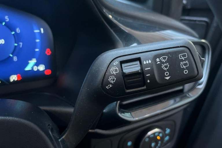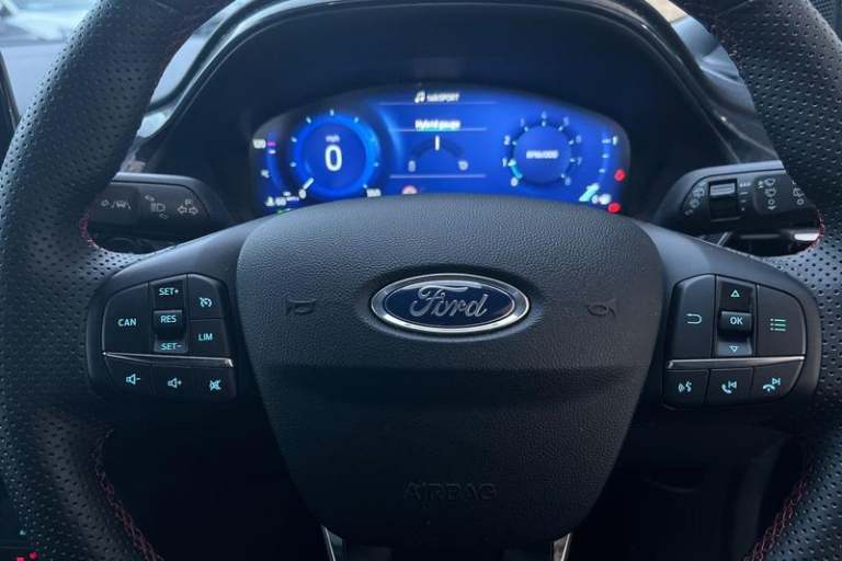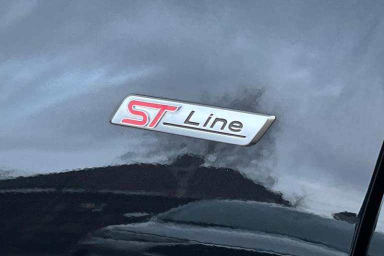 Driver impairment monitor, Emergency call service, Ford easy fuel, Full digital 12.3 instrument cluster, Lane keeping aid with lane departure warning, Power assist steering, Power start button, Rear parking sensor, Selectable drive modes(Normal, Eco, Sport, Slippery and Trail), Speed sign recognition, Automatic headlights with auto high beam, Automatic rain sensing wipers, LED rear lamps, Power foldable heated door mirrors with puddle lamps, Projector headlamps with LED day time running lights and front fog lamps, Quickclear heated windscreen, Rear side wing doors, Rear wiper, ST-Line body styling kit with unique grille, Third brake light, 3 seat bench in 2nd row, Centre console with armrest and stowage, Ford megabox extended bootspace, Front and rear head restraints, Front floor mats, Manual 2 way passenger seat adjustment, Manual 4 way driver seat adjust with lumbar adjustment, Single front passenger seat, ST- Line cloth trim with red stitching, ST-Line flat bottomed sensico leather steering wheel with leather handbrake and aluminium gear knob, 3 rear seatbelts, Child safety lock, Electronic stability control (ESC) and hill start assist, Pedestrian/cyclist detection & post-collision braking, Pre collision assist system, Tyre pressure monitoring system (TPMS)