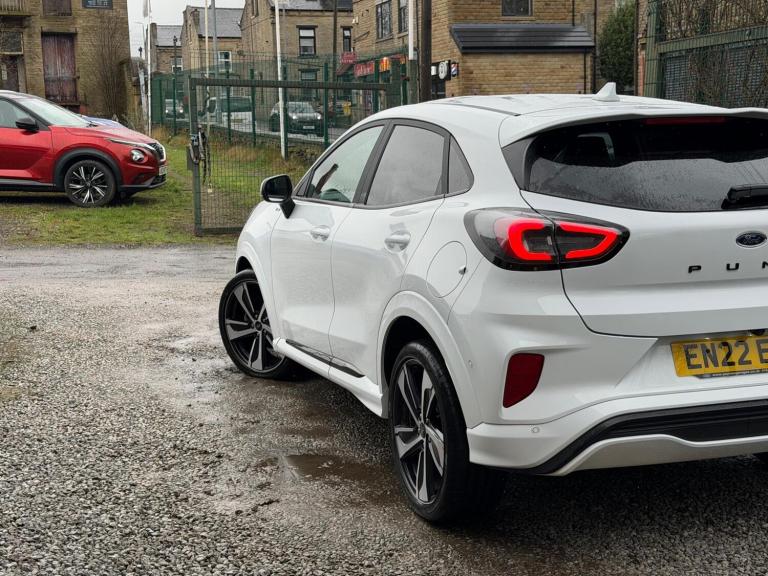 This 2022 Ford Puma ST-Line X offers exceptional value with remarkably low mileage for its age, having covered just 19,673 miles. This Euro 6 compliant 1.0 litre petrol hybrid model presents a compelling blend of modern technology and sporty design. It comes equipped with the desirable Driver Assistance Pack, which includes Blind Spot Assistance, Adaptive Cruise Control, and front and rear parking sensors with a rear camera, enhancing safety and convenience. Further enhancing its appeal are the striking 19 inch matt black machined finish alloy wheels and a wireless charging pad integrated with electronic air temperature control for effortless device charging and climate management.The ST-Line X trim level ensures a premium experience, further elevated by the B&O Premium Audio System and Ford SYNC 3 Navigation. This advanced infotainment system seamlessly integrates with your smartphone via Android Auto and Apple CarPlay, offering full Bluetooth connectivity and a luxury branded sound system for an immersive audio journey. Automatic headlights are also included as part of the Driver Assistance Pack, demonstrating thoughtful design and advanced functionality that sets this Puma apart from other vehicles in its class, Over 70 quality used cars and every car prepared to our unique standard. hp clear, pdi checked, cat S repaired, All cars Professional jet wash & valet. Pre-handover inspection by our qualified staff. ***3/6/12/ MONTHS WARRANTY AVAILABLE***DELIVERY NATIONWIDE***PART EXCHANGE WELCOME***PLEASE CALL FOR MORE DETAILS