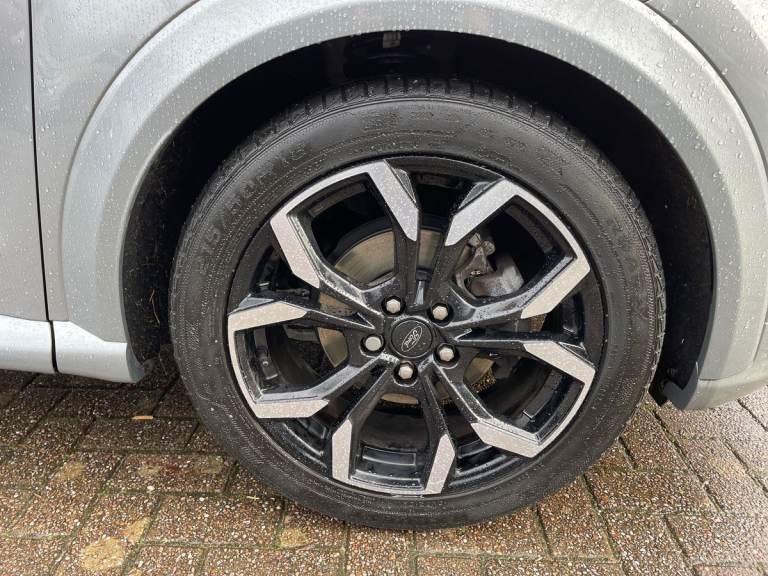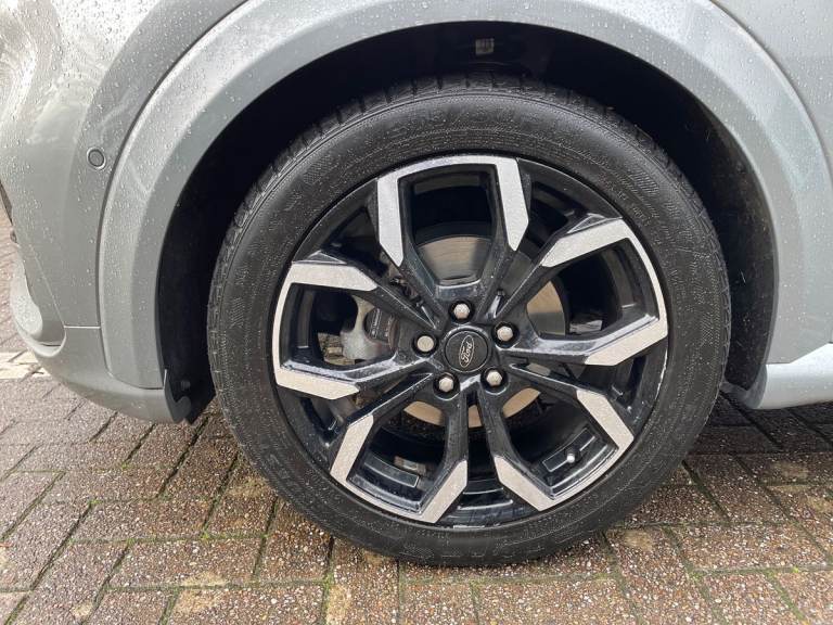 ..Driver impairment monitor, Emergency call service, Ford easy fuel, Full digital 12.3'' instrument cluster, Lane keeping aid with lane departure warning, Power assist steering, Power start button, Rear parking sensor, Selectable drive modes(Normal, Eco, Sport, Slippery and Trail), Speed sign recognition, Sport suspension, Automatic headlights with auto high beam, Automatic rain sensing wipers, Front fog lamps, LED daytime running lights, LED rear lamps, Power foldable heated door mirrors with puddle lamps, Privacy glass to side rear windows and tailgate glass, Quickclear heated windscreen, Rear side wing doors, Rear wiper, ST-Line body styling kit with unique grille and large body colour rear spoiler, Third brake light, 3 seat bench in 2nd row, Centre console with armrest and stowage, Ford megabox extended bootspace, Front and rear head restraints, Front floor mats, Manual 4 way driver seat adjust with lumbar adjustment, Manual 4 way passenger seat with lumbar seat adjustment, Sensico partial premium upholstery, Single front passenger seat, ST-Line flat bottomed sensico leather steering wheel with leather handbrake and aluminium gear knob, Wireless charging pad with electronic air temperature control (EATC), B&O Premium Audio system + Ford SYNC 3 navigation pack - Puma, 3 rear seatbelts, Child safety lock, Electronic stability control (ESC) and hill start assist, Pedestrian/cyclist detection & post-collision braking, Pre collision assist with autonomous emergency braking, Tyre pressure monitoring system (TPMS), Thatcham alarm, Carbon look interior deco spears
