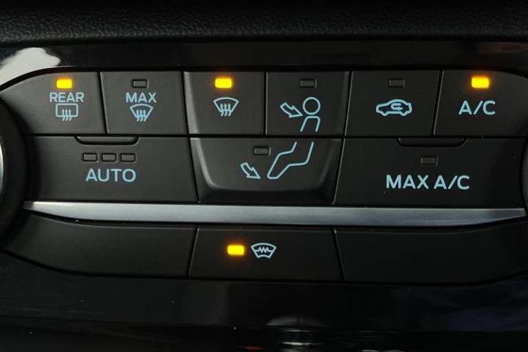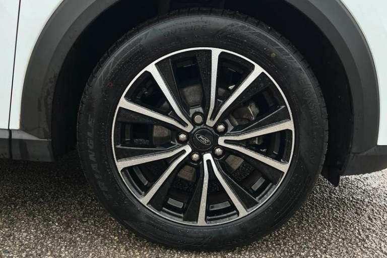 Driver impairment monitor, Emergency call service, Ford easy fuel, Lane keeping aid with lane departure warning, Power assist steering, Power start button, Rear parking sensor, Selectable drive modes(Normal, Eco, Sport, Slippery and Trail), Speed sign recognition, Automatic headlights with auto high beam, Automatic rain sensing wipers, LED rear lamps, Power foldable heated door mirrors with puddle lamps, Projector headlamps with LED day time running lights and front fog lamps, Quickclear heated windscreen, Rear side wing doors, Rear wiper, Third brake light, 3 seat bench in 2nd row, Centre console with armrest and stowage, Electronic automatic temperature control (EATC), Ford megabox extended bootspace, Front and rear head restraints, Front floor mats, Manual 2 way passenger seat adjustment, Manual 4 way driver seat adjust with lumbar adjustment, Sensico leather steering wheel/gear knob/handbrake, Single front passenger seat, Titanium cloth upholstery, 3 rear seatbelts, Child safety lock, Electronic stability control (ESC) and hill start assist, Pedestrian/cyclist detection & post-collision braking, Pre collision assist system, Tyre pressure monitoring system (TPMS)