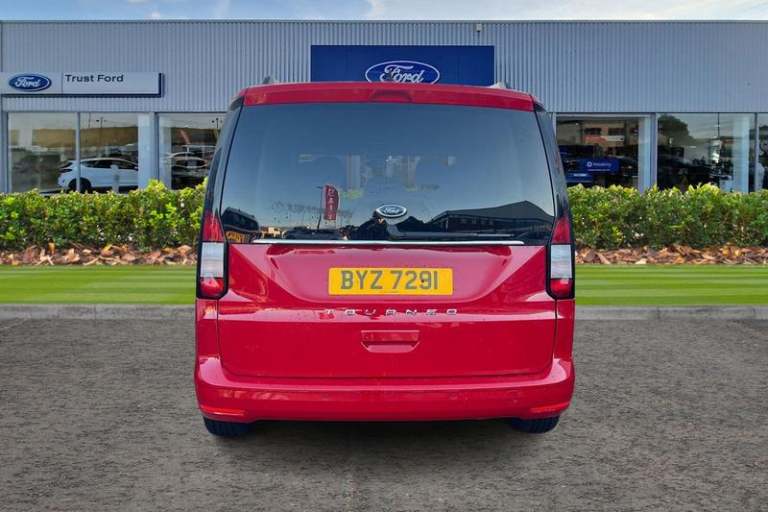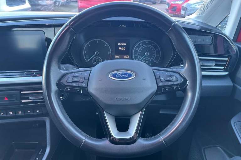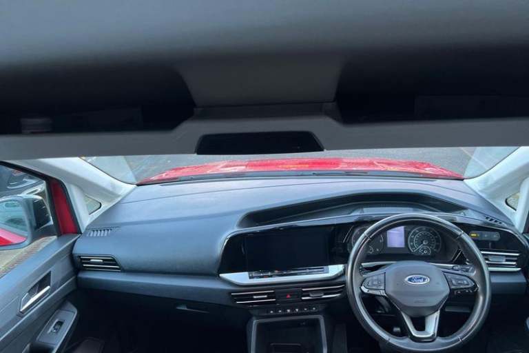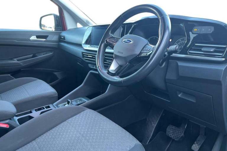 10inch touchscreen infotainment display with volume and temperature slider controls, Android Auto and Apple CarPlay with USB or Wireless Connectivity, Blind spot assist, Brake wear indicator, Cross traffic alert, Driver impairment monitor, E-call, Enhanced digital cluster with navigation integration, FordPass Connect Embedded Modem, Front and rear parking sensors, Front Camera for assistance systems, Lane keeping aid, Mobile phone interface, PAS, Rear view camera, Speed control with ASLD, Stop/start system, Trip computer, Auto headlamps On/off, Automatic windshield wiper, Black coloured exterior mirror finish, Body coloured exterior door handles, Body coloured exterior tailgate handles, Body coloured plastic front bumper, Body coloured plastic rear bumper, Chrome grille and fog lamp surround, Dark tinted rear privacy glass, Daytime running lights, Dual power fold heated mirrors, Dual sliding side load doors, Electric rear window defroster, Electrochromic inside mirror, Fixed 3rd row LHS and RHS window, Fixed rear window, Flip open 2nd row RHS and LHS window, Follow me home headlamps, Front bumper with chrome insert, Front fog lights, High mounted stop lamp, Intermittent variable windshield wiper, Liftgate rear cargo door, Power front windows with 1 touch up/down, Quickclear electric windshield defroster, Rain sensor, Rear registration plate light, Rear window wash/wipe, Roof rack silver painted rails, Standard green glass windscreen, Weather protection seals, 12V socket in luggage