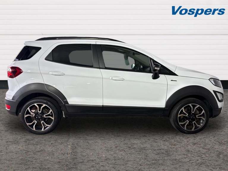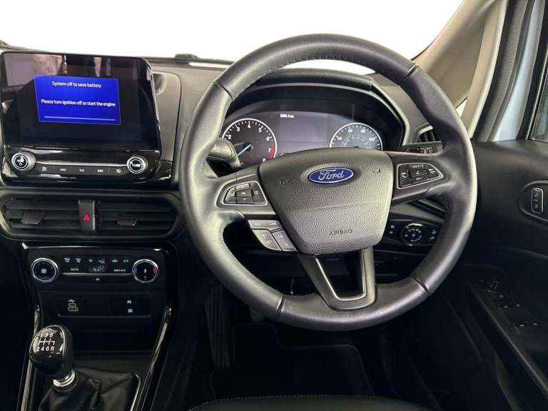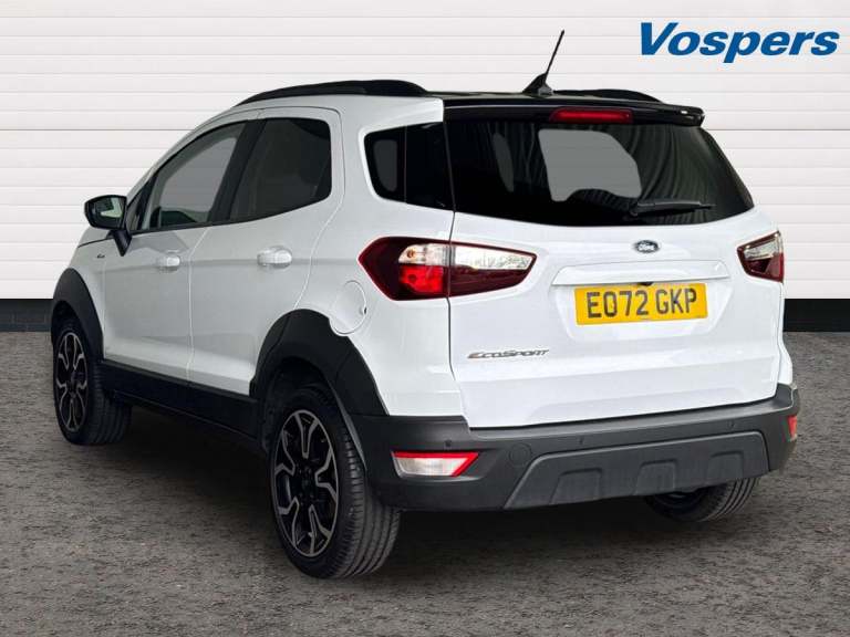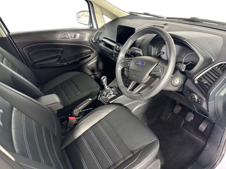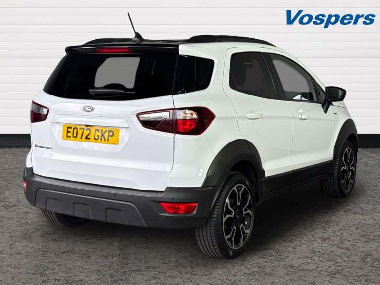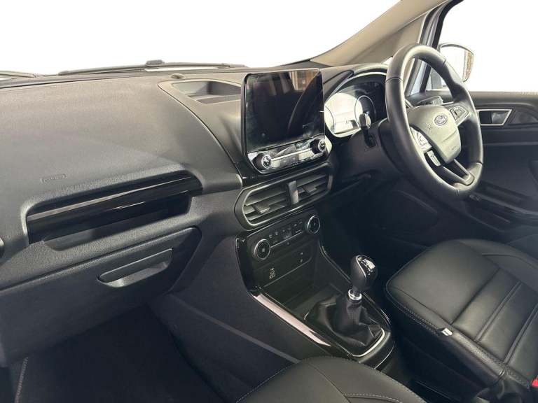 .Ford EcoSport Active Low Miles, Rear Camera Key Features: Satellite Navigation with Apple CarPlay & Android Auto Rear View Camera with Parking Sensors Cruise Control with Intelligent Speed Limiter Quickclear Heated Windscreen Electronic Automatic Climate Control This 2023 Ford EcoSport Active is an excellent example with just 5,981 miles, offering the perfect blend of compact SUV practicality, modern technology and impressive efficiency. Powered by Fords proven 1.0-litre EcoBoost petrol engine and built to Euro 6 emissions standards, it delivers strong performance while returning up to 46 mpg, making it a great choice for both town and longer journeys. Inside, the EcoSport comes well equipped with Ford SYNC 3 satellite navigation, an 8-inch touchscreen, and seamless Apple CarPlay and Android Auto connectivity to keep you connected on the move. The rear view camera and parking sensors make everyday manoeuvring simple, while cruise control with intelligent speed limiter helps make longer drives more relaxed. Fords Quickclear heated windscreen and automatic climate control add extra comfort and convenience throughout the year. With just 1 owner from new, this vehicle has clearly been well cared for and benefits from Ford manufacturer approval, offering added reassurance and peace of mind. The car is presented in excellent condition inside and out, fully prepared and ready to drive away. Flexible finance options and part exchange are welcome, and our team will be happy to help you secure the right deal..Cruise control, e-Call (emergency call), Easy fuel capless refuelling system, Ford SYNC 3 nav system with DAB radio,8'' screen, emergency assistance,Apple car play/Android auto, 2x USB, 6 speakers, Ford pass connect, Intelligent speed limiter, PAS, Rear parking sensors, Rear view camera, Traffic sign recognition, Trip computer, Sports suspension, Steering wheel mounted audio controls, Agate black contrast roof and door mirrors, Auto dimming rear view mirror, Automatic front wipers, Automatic headlights, Black body styling kit - Black headlamp bezel, wheel mouldings, front grille bars and surround in black, lower bodyside styling, Black roof rails, Body colour door handles, Body coloured bumpers, Electrically adjustable and heated door mirrors, Front fog lights, Headlight levelling control, LED day running lights, LED third brake light, Power front and rear windows, Privacy glass, Puddle lights, Quick-clear heated windscreen, Rear side wing doors,