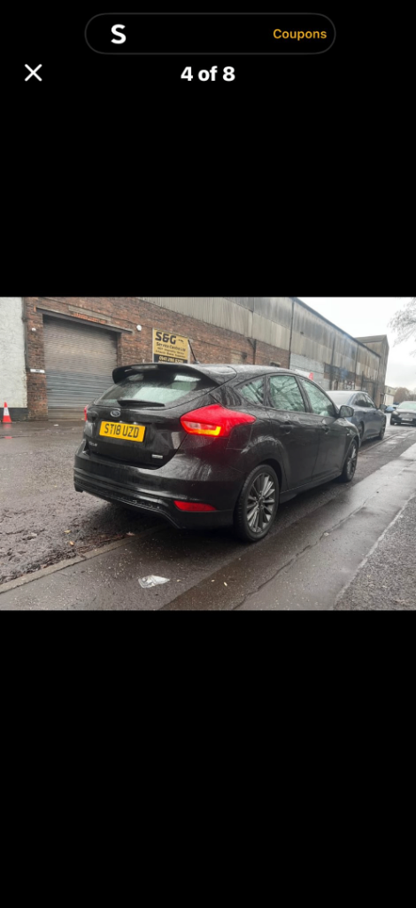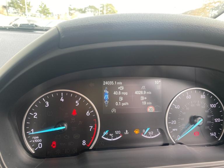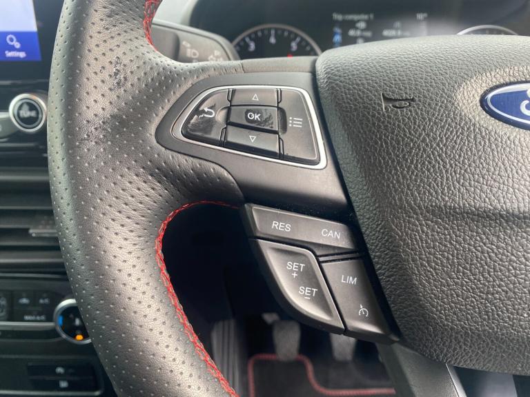 ..Cruise control, e-Call (emergency call), Easy fuel capless refuelling system, Ford SYNC 3 nav system with DAB radio,8'' screen, emergency assistance,Apple car play/Android auto, 2x USB, 6 speakers, Ford pass connect, Intelligent speed limiter, PAS, Rear parking sensors, Rear view camera, Traffic sign recognition, Trip computer, Sports suspension, Steering wheel mounted audio controls, Auto dimming rear view mirror, Automatic front wipers, Automatic headlights, Black roof rails, Body colour door handles, Body coloured bumpers, Chrome lower window surround, Electrically adjustable and heated door mirrors, Front fog lights, Front grille bars and surround in black, Headlight levelling control, Large rear roof spoiler, LED day running lights, LED third brake light, Power front and rear windows, Puddle lights, Quick-clear heated windscreen, Rear side wing doors, Rear wiper, ST Line body styling kit - Black headlamp bezel, front and rear sport bumpers, body colour lower door claddings, 12V socket in front and rear, 3 seat bench in 2nd row, 60/40 split rear seats, Ambient lighting, Centre console with sliding front armrest, Cooled glovebox, Courtesy lights with map reading light, Driver seat height/lumbar adjust, Driver's side glovebox, Driver/passenger sunvisors and lidded vanity mirrors, EATC - Electronic Auto Temperature control, Folding grab handles, Front head restraints, Front seat back map pockets, Illuminated glovebox, Illuminated luggage compartment, Isofix system on outer rear seats, Luggage compartment carpet, Neosuede/Partial sensico leather upholstery, Overhead console with sunglasses holder, Rake adjustable rear seats, Reach + rake adjustable steering column, Rear headrests, Sensico trimmed steering wheel, handbrake and gearshift gaiter with red stitching, Single front passenger seat, ST-Line Front floor mats with red stitching, Stainless steel sports pedals, Storage drawers under front seats, Tie down hooks, Variable boot floor, 3x3 point rear seatbelts, ABS, Autonomous emergency braking, Child locks on rear doors, Curtain airbags, Driver airbag, Drivers knee airbag, Electronic Stability Programme with hill launch assist, Front passenger airbag deactivation, Front side airbags, Passenger airbag, Pre collision assist system with AEB, Seatbelt reminder for driver and front passenger, Traction control, Tyre pressure monitoring system, Immobiliser, MyKey system, Remote central locking, Thatcham 1 volume sensing alarm, Low rolling resistance tyres,