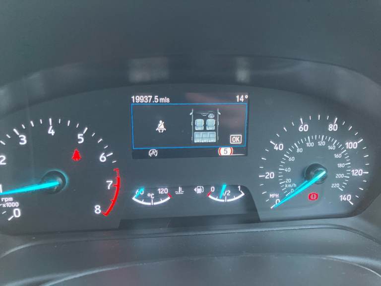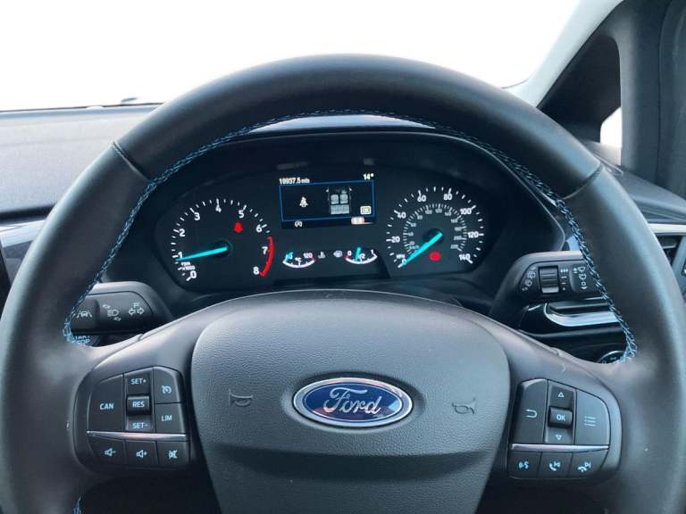 ..4.2'' Colour TFT Ice blue illumination analogue cluster, Driver alert system, Electric power steering, Ford easy fuel, Lane keep assist, Lane keeping aid, Rear parking distance sensors, Selectable drive modes (Normal, Sport, Track), Trip computer, Rough road suspension with increased ride height adjust, 3rd brake light, Auto high beam, Automatic headlights, Body colour bumpers, Body coloured electrically operated with side indicators, Electric front windows/one touch facility, Electric rear windows, Quickclear heated windscreen, Rain sensing wipers and auto dimming rear view mirror, Rear privacy glass, Rear side wing doors, Rear wiper, Rugged bodystyling kit with active front wing badges, 3 rear headrests, 3 seat bench in 2nd row, Adjustable head restraints, Centre console with opening armrest, 2x cupholders, 12v and USB, Cloth upholstery with dark blue stitching, Leather gear knob, Manual 2 way passenger seat adjust, Manual 4-way driver seat adjust, Manual air conditioning, Premium floor mats, Sensico wrapped steering wheel, Single front passenger seat, 3 point seatbelts on all rear seats, Electronic stability control with hill start assist, Front and rear seat belt warning, Manual child lock in rear doors, Tyre pressure monitoring system, Keyless start with 'Ford Power' starter button, MyKey system, Remote central locking, Thatcham alarm with power door dead locks, 17'' 5 spoke alloys with rough metal machined finish
