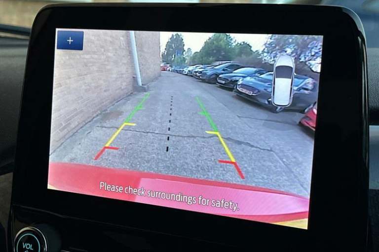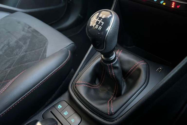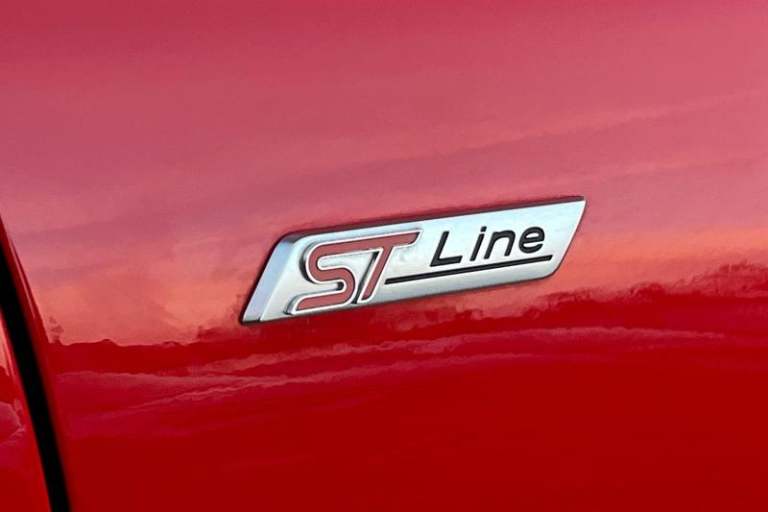 Driver alert system, Electric power steering, Ford easy fuel, Lane keep assist, Lane keeping aid, Rear parking distance sensors, Rear view camera, Selectable drive modes (Normal, Sport, Track), Trip computer, 3rd brake light, Auto high beam, Automatic headlights, Body colour bumpers, Body colour large rear spoiler, Body coloured electrically operated with side indicators, Electric front windows/one touch facility, Electric rear windows, LED rear lights, Quickclear heated windscreen, Rain sensing wipers and auto dimming rear view mirror, Rear privacy glass, Rear side wing doors, Rear wiper, Unique ST-Line grille, full bodystyling kit and large body coloured rear spoiler, 3 rear headrests, 3 seat bench in 2nd row, 4 way manually adjustable passenger seat, Adjustable head restraints, Black headlining, Centre console with opening armrest, 2x cupholders, 12v and USB, EATC - Electronic Auto Temperature control, Leather gear knob, Manual 4-way driver seat adjust, Premium floor mats, Sensico partial premium leather upholstery with red stitching, Sensico wrapped steering wheel, Single front passenger seat, 3 point seatbelts on all rear seats, Electronic stability control with hill start assist, Front and rear seat belt warning, Manual child lock in rear doors, Tyre pressure monitoring system