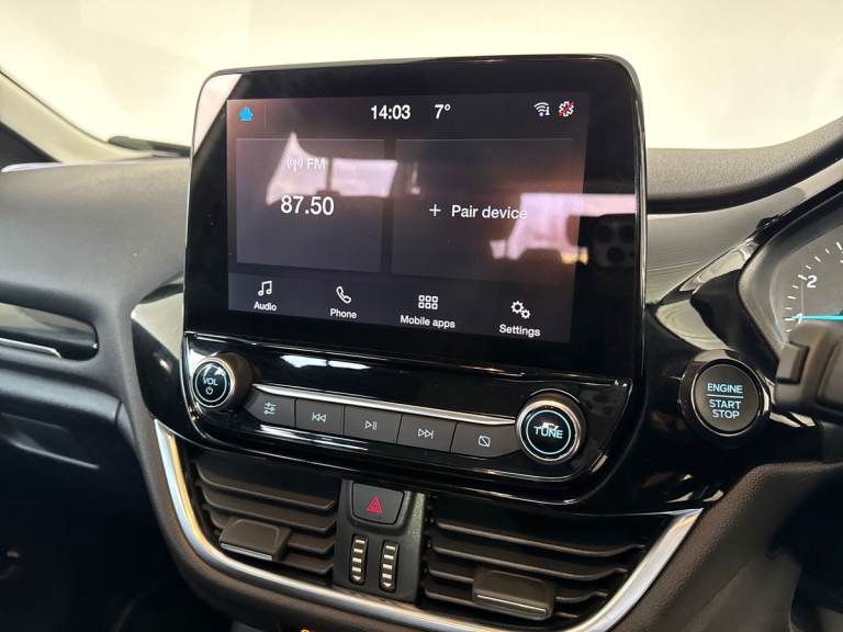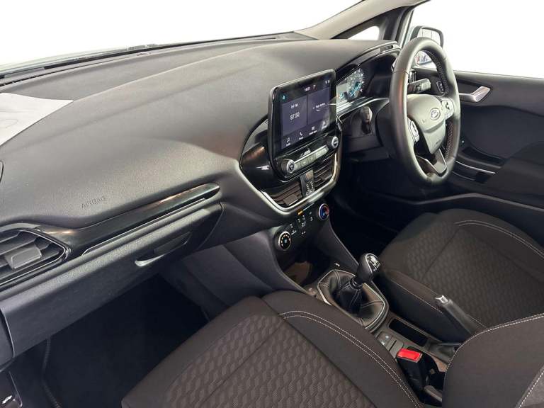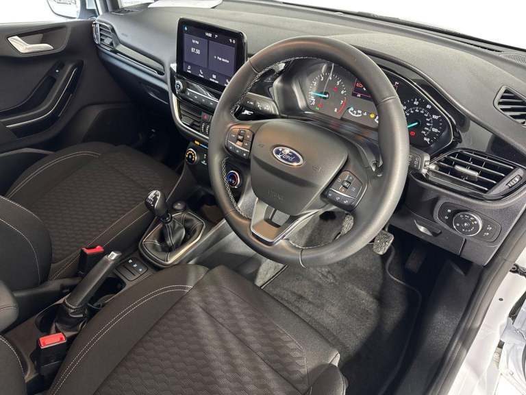 .Key Features: Rear parking distance sensors Cruise Control includes Speed Limiter and Intelligent Speed Assistance Ownership: 1 Owner This 2023 Ford Fiesta T Titanium presents an exceptional example with remarkably low mileage for its age, having covered just 12041 miles. As a Ford manufacturer approved vehicle, it offers peace of mind, boasting a Euro 6 emission class and a responsive 1.0L Petrol Hybrid engine. This model comes equipped with the Ford SYNC2.5 system, offering seamless integration with Android Auto and Apple CarPlay, alongside LED headlights that feature distinctive daytime running lights and integrated fog lights for enhanced visibility. The performance of this Fiesta T Titanium is a key highlight, achieving 0-62mph in a swift 9.4 seconds, demonstrating its agility and efficiency. This acceleration figure indicates a superior driving experience compared to many other vehicles in its class. The combination of its efficient hybrid powertrain, modern technology, and low mileage makes this 2023 Ford Fiesta T Titanium a compelling choice for those seeking a well maintained and capable compact car..4.2'' Colour TFT Ice blue illumination analogue cluster, Driver alert system, Electric power steering, Ford easy fuel, Lane keep assist, Lane keeping aid, Rear parking distance sensors, Selectable drive modes (Normal, Sport, Track), Trip computer, Standard suspension, 3rd brake light, Auto high beam, Automatic headlights, Body colour bumpers, Body coloured electrically operated with side indicators, Electric front windows/one touch facility, Electric rear windows, High gloss chrome surround with satin grille insert, Quickclear heated windscreen, Rain sensing wipers and auto dimming rear view mirror, Rear privacy glass, Rear side wing doors, Rear wiper, 3 rear headrests, 3 seat bench in 2nd row, Adjustable head restraints, Centre console with opening armrest, 2x cupholders, 12v and USB, Cloth upholstery with metal grey stitching, Leather gear knob, Manual 2 way passenger seat adjust, Manual 4-way driver seat adjust, Manual air conditioning, Premium floor mats, Sensico wrapped steering wheel, Single front passenger seat, 3 point seatbelts on all rear seats, Electronic stability control with hill start assist, Front and rear seat belt warning, Manual child lock in rear doors, Tyre pressure monitoring system, Keyless start with 'Ford Power' starter button, MyKey system, Remote central locking, Thatcham alarm with power door dead locks