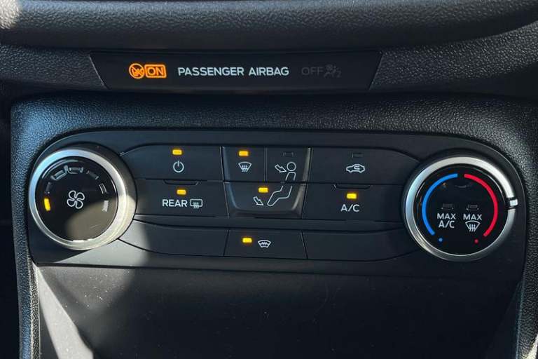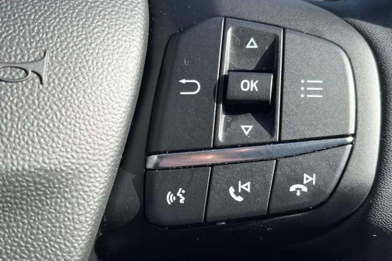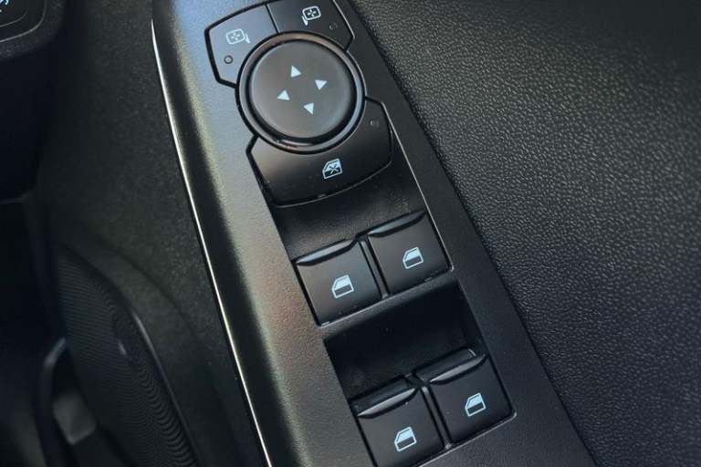 4.2 Colour TFT Ice blue illumination analogue cluster, Driver alert system, Electric power steering, Ford easy fuel, Lane keep assist, Lane keeping aid, Rear parking distance sensors, Selectable drive modes (Normal, Sport, Track), Trip computer, 3rd brake light, Auto high beam, Automatic headlights, Body colour bumpers, Body coloured electrically operated with side indicators, Electric front windows/one touch facility, Electric rear windows, High gloss chrome surround with satin grille insert, Quickclear heated windscreen, Rain sensing wipers and auto dimming rear view mirror, Rear privacy glass, Rear side wing doors, Rear wiper, 3 rear headrests, 3 seat bench in 2nd row, Adjustable head restraints, Centre console with opening armrest, 2x cupholders, 12v and USB, Cloth upholstery with metal grey stitching, Leather gear knob, Manual 2 way passenger seat adjust, Manual 4-way driver seat adjust, Manual air conditioning, Premium floor mats, Sensico wrapped steering wheel, Single front passenger seat, 3 point seatbelts on all rear seats, Electronic stability control with hill start assist, Front and rear seat belt warning, Manual child lock in rear doors, Tyre pressure monitoring system