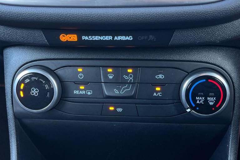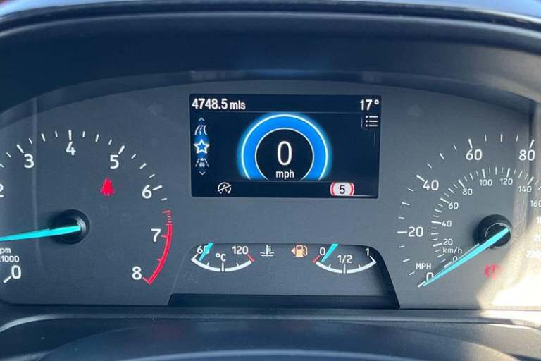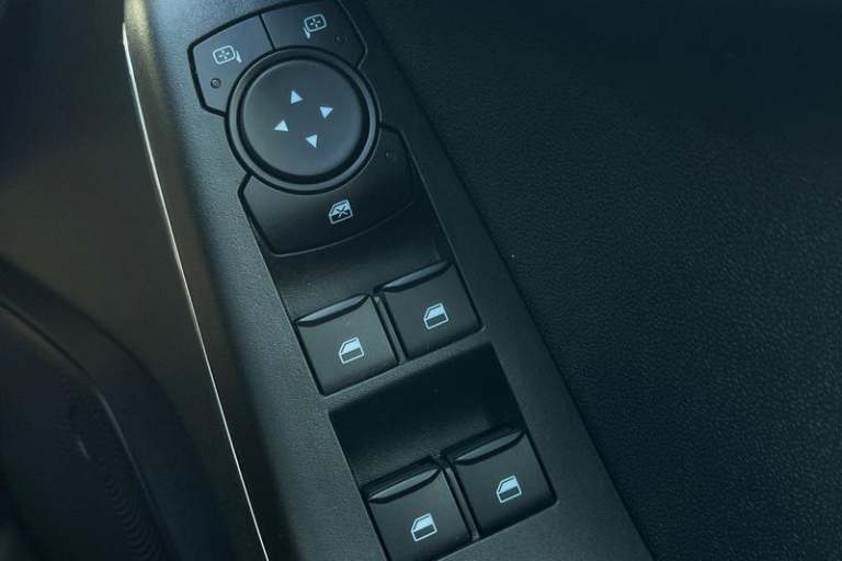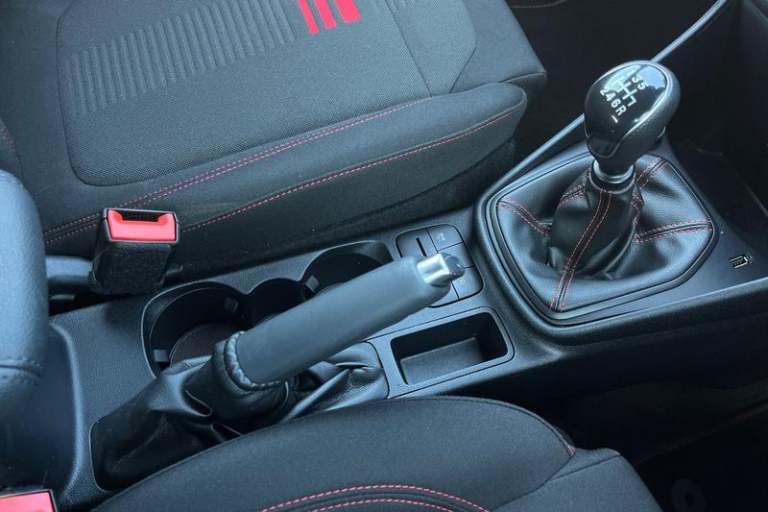 4.2 Colour TFT Ice blue illumination analogue cluster, Driver alert system, Electric power steering, Ford easy fuel, Lane keep assist, Lane keeping aid, Rear parking distance sensors, Selectable drive modes (Normal, Sport, Track), Trip computer, 3rd brake light, Auto high beam, Automatic headlights, Body colour bumpers, Body colour large rear spoiler, Body coloured electrically operated with side indicators, Electric front windows/one touch facility, Electric rear windows, Quickclear heated windscreen, Rain sensing wipers and auto dimming rear view mirror, Rear privacy glass, Rear side wing doors, Rear wiper, Unique ST-Line grille, full bodystyling kit and large body coloured rear spoiler, 3 rear headrests, 3 seat bench in 2nd row, Adjustable head restraints, Black headlining, Centre console with opening armrest, 2x cupholders, 12v and USB, Cloth upholstery with red stitching, Leather gear knob, Manual 2 way passenger seat adjust, Manual 4-way driver seat adjust, Manual air conditioning, Premium floor mats, Sensico wrapped steering wheel, Single front passenger seat, 3 point seatbelts on all rear seats, Electronic stability control with hill start assist, Front and rear seat belt warning, Manual child lock in rear doors, Tyre pressure monitoring system