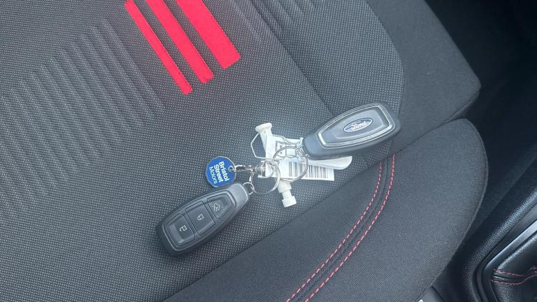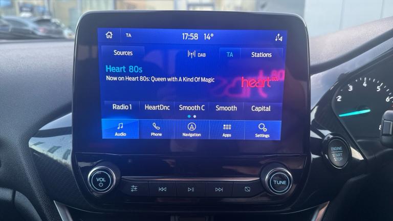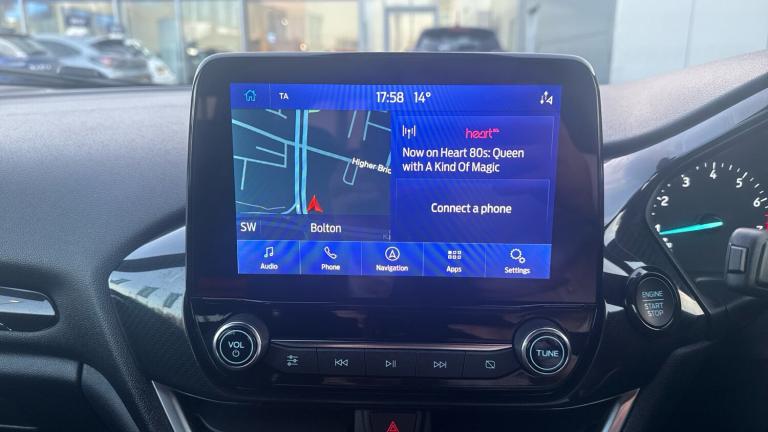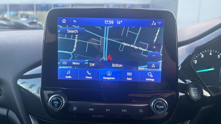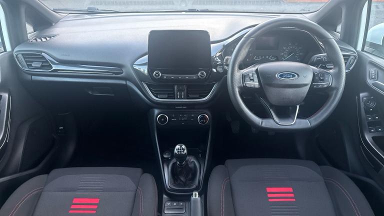 A dynamic supermini that combines eye-catching design, engaging performance, and everyday practicality. Powered by Ford’s award-winning 1.0 litre EcoBoost petrol engine, this Fiesta delivers a perfect balance of responsive power and impressive fuel efficiency, making it ideal for both urban commuting and longer drives. The ST-Line trim enhances its athletic appeal with distinctive body styling, sleek lines, striking alloy wheels, and LED daytime running lights, giving it a confident and modern road presence. Inside, the cabin is well-designed and driver-focused, featuring a user-friendly touchscreen infotainment system with Apple CarPlay and Android Auto, Bluetooth connectivity, DAB digital radio, and a multifunction steering wheel. Sports seats and stylish interior detailing add to the premium feel, while features such as air conditioning, cruise control, and rear parking sensors ensure comfort and convenience on every journey. The five-door layout offers practicality for passengers, along with a useful boot space for everyday needs. Renowned for its sharp handling and smooth ride, the Fiesta remains one of the most enjoyable hatchbacks to drive, making this ST-Line model an excellent all-round choice.At Vertu Motors Ford Bolton all our vehicles come fully prepared to the highest standard with our peace of mind Main Dealer Guarantee. This includes having any tyre replaced that has less than 3mm tread depth (legal limit is 1.6mm), minimum 6 months MOT and at least 6 months or 6,000 miles till your next service. All the cars that we offer are HPI clear (to check there is no outstanding finance or prior accidents) and we do a full Government VOSA report check to verify the mileage. Nationwide delivery is available on all our vehicles, so call today to arrange a test drive and let one of our professional sales executives give you the Vertu Motors Ford Bolton Experience. Due to our high stock turnover, we recommend leaving a deposit on this car..Cruise Control, Satellite Navigation, Alloy Wheels, DAB Radio, Bluetooth, Parking Sensors, Stop Start, Heated Front Windscreen, Low Mileage, Full Service History, USB, Apple-Android Play& Auto Lights, Premium floor mats, Quickclear heated windscreen, Electric front windows/one touch facility, Rear privacy glass, Rain sensing wipers and auto dimming rear view mirror, Rear wiper, Electric rear windows, Electronic stability control with hill start assist, Sports suspension, Electric power steering, Rear parking distance sensors, Driver alert system, Selectable drive modes (Normal, Sport, Track), Lane keep assist, Speed limiter, Lane keeping aid, Ford easy fuel, Trip computer, Wireless charging, 4.2"" Colour TFT Ice blue illumination analogue cluster, Body coloured electrically operated with side indicators, Body colour bumpers, Body colour large rear spoiler, Rear side wing doors, Unique ST-Line grille, full bodystyling kit and large body coloured rear spoiler