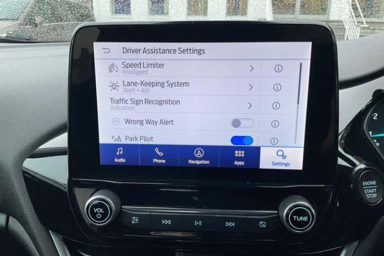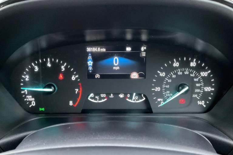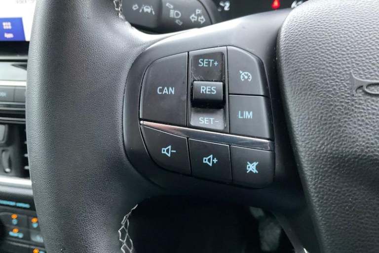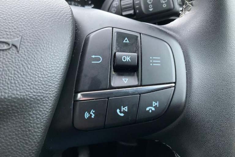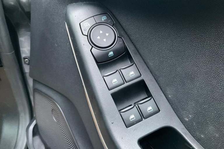 4.2 Colour TFT Ice blue illumination analogue cluster, Driver alert system, Electric power steering, Ford easy fuel, Lane keep assist, Lane keeping aid, Rear parking distance sensors, Selectable drive modes (Normal, Sport, Track), Trip computer, 3rd brake light, Auto high beam, Automatic headlights, Body colour bumpers, Body coloured electrically operated with side indicators, Electric front windows/one touch facility, Electric rear windows, High gloss chrome surround with satin grille insert, Quickclear heated windscreen, Rain sensing wipers and auto dimming rear view mirror, Rear privacy glass, Rear side wing doors, Rear wiper, 3 rear headrests, 3 seat bench in 2nd row, Adjustable head restraints, Centre console with opening armrest, 2x cupholders, 12v and USB, Cloth upholstery with metal grey stitching, Leather gear knob, Manual 2 way passenger seat adjust, Manual 4-way driver seat adjust, Manual air conditioning, Premium floor mats, Sensico wrapped steering wheel, Single front passenger seat, 3 point seatbelts on all rear seats, Electronic stability control with hill start assist, Front and rear seat belt warning, Manual child lock in rear doors, Tyre pressure monitoring system
