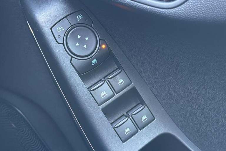 4.2 Colour TFT Ice blue illumination analogue cluster, Driver alert system, Electric power steering, Ford easy fuel, Lane keep assist, Lane keeping aid, Rear parking distance sensors, Selectable drive modes (Normal, Sport, Track), Trip computer, 3rd brake light, Auto high beam, Automatic headlights, Body colour bumpers, Body coloured electrically operated with side indicators, Electric front windows/one touch facility, Electric rear windows, High gloss chrome surround with satin grille insert, Quickclear heated windscreen, Rain sensing wipers and auto dimming rear view mirror, Rear privacy glass, Rear side wing doors, Rear wiper, 3 rear headrests, 3 seat bench in 2nd row, Adjustable head restraints, Centre console with opening armrest, 2x cupholders, 12v and USB, Cloth upholstery with metal grey stitching, Leather gear knob, Manual 2 way passenger seat adjust, Manual 4-way driver seat adjust, Manual air conditioning, Premium floor mats, Sensico wrapped steering wheel, Single front passenger seat, 3 point seatbelts on all rear seats, Electronic stability control with hill start assist, Front and rear seat belt warning, Manual child lock in rear doors, Tyre pressure monitoring system