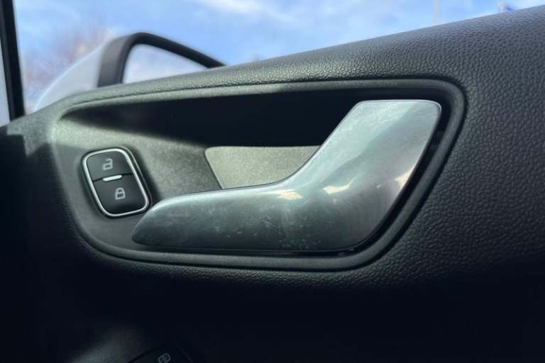 4.2 Colour TFT Ice blue illumination analogue cluster, Driver alert system, Electric power steering, Ford easy fuel, Lane keep assist, Lane keeping aid, Rear parking distance sensors, Selectable drive modes (Normal, Sport, Track), Trip computer, 3rd brake light, Auto high beam, Automatic headlights, Body colour bumpers, Body coloured electrically operated with side indicators, Electric front windows/one touch facility, Electric rear windows, High gloss chrome surround with satin grille insert, Quickclear heated windscreen, Rain sensing wipers and auto dimming rear view mirror, Rear privacy glass, Rear side wing doors, Rear wiper, 3 rear headrests, 3 seat bench in 2nd row, Adjustable head restraints, Centre console with opening armrest, 2x cupholders, 12v and USB, Cloth upholstery with metal grey stitching, Leather gear knob, Manual 2 way passenger seat adjust, Manual 4-way driver seat adjust, Manual air conditioning, Premium floor mats, Sensico wrapped steering wheel, Single front passenger seat, 3 point seatbelts on all rear seats, Electronic stability control with hill start assist, Front and rear seat belt warning, Manual child lock in rear doors, Tyre pressure monitoring system