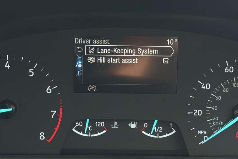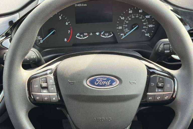 4.2 TFT Ice blue illumination analogue cluster, Cruise control with adjustable speed limiter, Electric power steering, Ford easy fuel, Ford SYNC 2.5 with DAB radio, 8 screen, emergency assistance, Apple car play/Android auto, 2x USB, 6 speakers, Lane keep assist, Lane keeping aid, Selectable drive modes (Normal, Sport, Track), Trip computer, 3rd brake light, Automatic headlights, Body colour bumpers, Body coloured electrically operated with side indicators, Electric front windows/one touch facility, High gloss chrome grille surround, LED headlights with LED daytime running light and integrated fog light, Quickclear heated windscreen, Rain sensing wipers and auto dimming rear view mirror, Rear side wing doors, Rear wiper, 3 rear headrests, 3 seat bench in 2nd row, Adjustable head restraints, Cloth upholstery with metal grey stitching, Front floor mats in velour, Manual 2 way passenger seat adjust, Manual 4-way driver seat adjust, Manual air conditioning, Single front passenger seat, 3 point seatbelts on all rear seats, Electronic stability control with hill start assist, Front and rear seat belt warning, Manual child lock in rear doors, Tyre pressure monitoring system