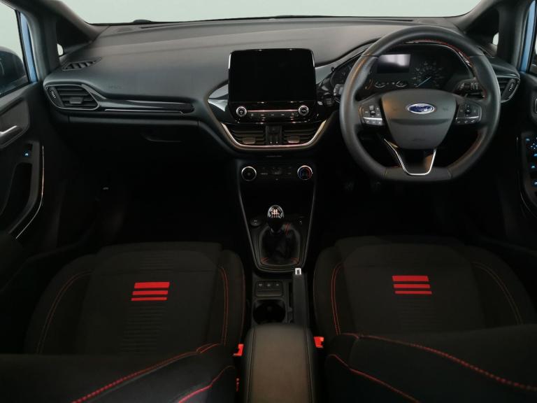Stand out in this vibrant blue Ford Fiesta ST-Line, featuring stylish black-red cloth seats with eye-catching red stitching and shimmering 17in alloy wheels. Enjoy cutting-edge tech with Ford SYNC3, sat nav, active lane assist, LED headlights, traffic sign recognition, and wifi on board. Stay entertained with Bluetooth audio streaming and stay secure with keyless start and Ford MyKey. Cruise control and selectable driving modes complete a sporty and comfortable driving experience. 3 services recorded, last serviced on 13/11/2026 at 22,025 miles. MOT to 09/01/2027. Visit our website for service history, online valuation, full vehicle specification plus multiple images. This vehicle is VAT qualifying. Any feature/option specified here is from 3rd party data. We cannot guarantee the accuracy of any specification supplied by a 3rd party. We recommend that you physically check the specification of the vehicle on site prior to purchase. This information does not form part of the buying contract. Terms & Conditions apply. We have over 2,000 cars available from our 10 national branches, check our website to see all our stock. Our Trustpilot rating is 4.4/5 with over 9,000 reviews.