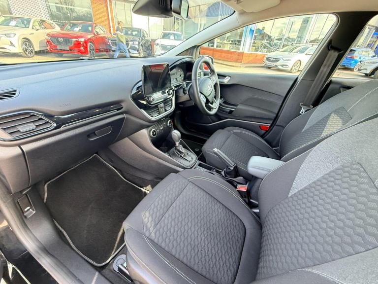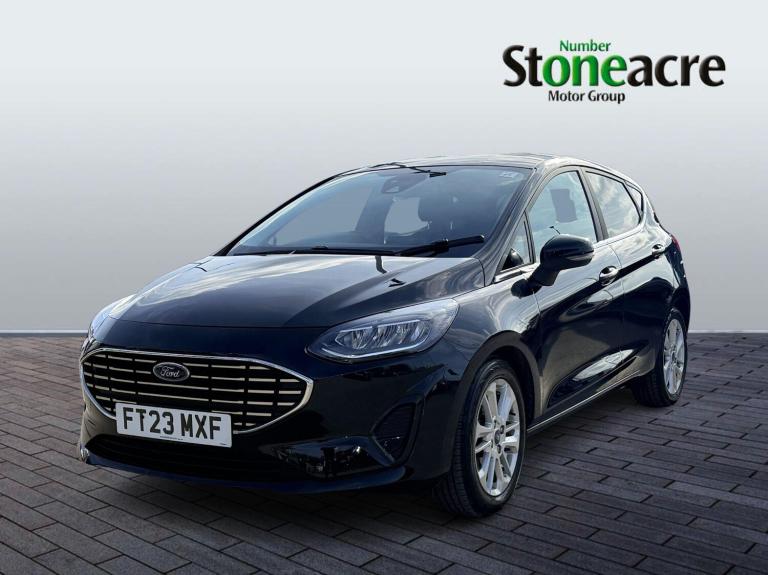 This 2023 Ford Fiesta T Titanium is a superb example, having had only one owner since new. This stylish hatchback boasts a responsive 1.0L Petrol Hybrid engine, meeting the Euro 6 emission standards. Inside, you'll find the Ford SYNC2.5 system, offering seamless connectivity with Android Auto and Apple CarPlay, alongside rear parking distance sensors for easier manoeuvring. The vehicle is also equipped with LED headlights that include daytime running lights and integrated fog lights, plus manual air conditioning to ensure a comfortable cabin environment.The performance of this Fiesta is a key highlight, with an impressive 0-62mph acceleration time of just 9.6 seconds, demonstrating its agility and efficiency. These specifications, combined with its low owner count and modern features, position this 2023 Ford Fiesta T Titanium as an excellent choice for those seeking a well maintained and feature rich compact car.