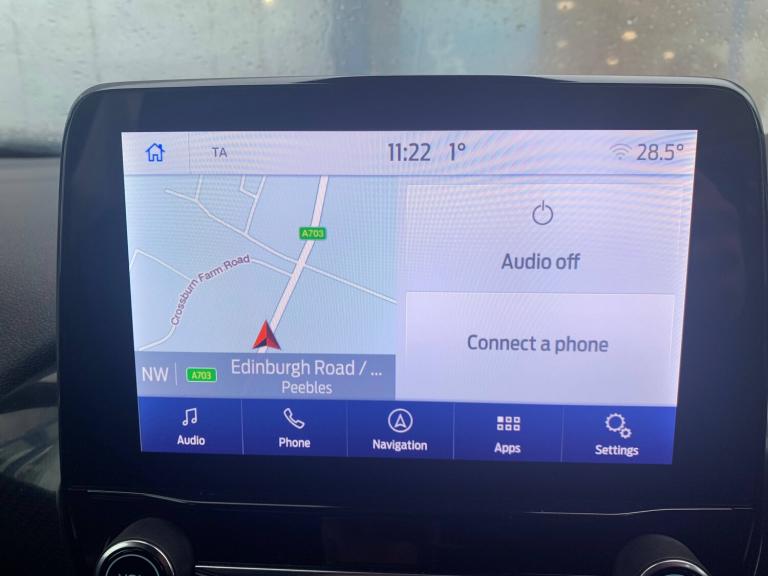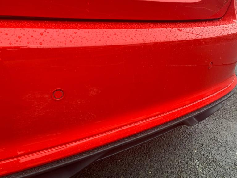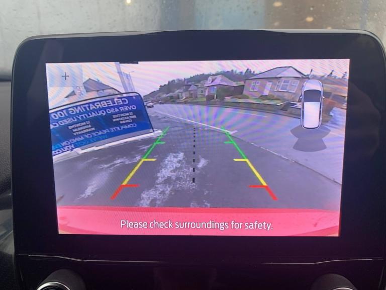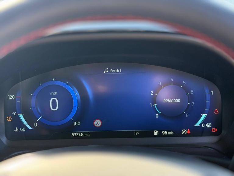 3 point seatbelts on all rear seats, Electronic stability control with hill start assist, Front and rear seat belt warning, Manual child lock in rear doors, Tyre pressure monitoring system, 4.2” Colour TFT Ice blue illumination analogue cluster, Cruise control with adjustable speed limiter and intelligent speed assist, Driver alert system, Electric power steering, Ford easy fuel, Ford SYNC 2.5 with DAB radio,8” screen, emergency assistance,Apple car play/Android auto, 2x USB, 6 speakers, Lane keep assist, Lane keeping aid, Rear parking distance sensors, Rear view camera, Selectable drive modes (Normal, Sport, Track), Traffic sign recognition, Trip computer, 3rd brake light, Auto high beam, Automatic headlights, Body colour bumpers, Body colour large rear spoiler, Body coloured electrically operated with side indicators, Electric front windows/one touch facility, Electric rear windows, LED headlights with LED daytime running light and integrated fog light, LED rear lights, Quickclear heated windscreen, Rain sensing wipers and auto dimming rear view mirror, Rear privacy glass, Rear side wing doors, Rear wiper, Solid paint, Unique ST-Line grille, full bodystyling kit and large body coloured rear spoiler, 3 rear headrests, 3 seat bench in 2nd row, 4 way manually adjustable passenger seat, Adjustable head restraints, Black headlining, Centre console with opening armrest, 2x cupholders, 12v and USB, EATC - Electronic Auto Temperature control, Leather gear knob, Manual 4-way driver seat adjust, Premium floor mats, Sensico partial premium leather upholstery with red stitching, Sensico wrapped steering wheel, Single front passenger seat, Winter pack [GTBAB]- Fiesta, Sports suspension, Ford keyfree system with Keyless entry and keyless start, MyKey system, Remote central locking, Thatcham alarm with power door dead locks, 18” 5x2 spoke alloys with pearl grey machined finish, Tyre repair kit