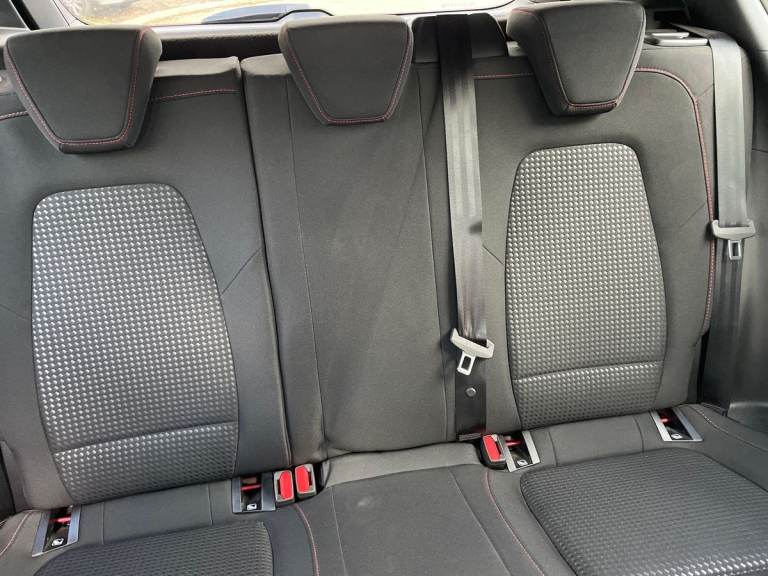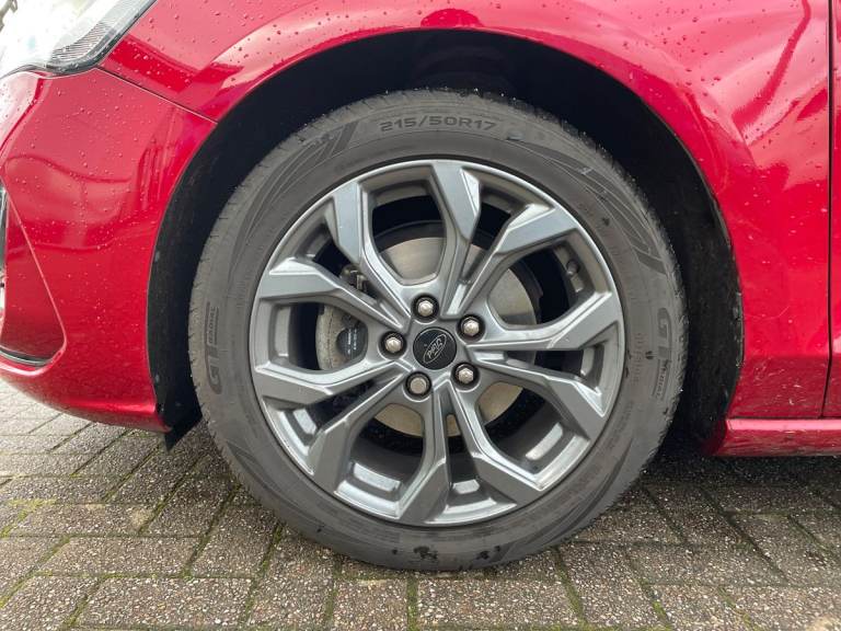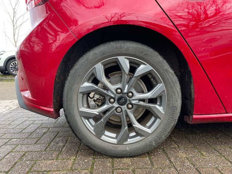..4.2'' Colour TFT Ice blue illumination analogue cluster with trip computer, Bluetooth system, Digital clock, Easy fuel capless refuelling system, Eco mode, Ford SYNC 4 Navigation with 13.2'' touchscreen, DAB radio, Emergency Assistance, Apple Carplay & Android Auto, 6 speakers & FordPass Connect, Lane keeping system - lane keeping alert and lane keeping aid, PAS, Rev counter, Selectable drive mode, Service interval indicator, Sports tuned suspension, 2 USB ports, Auto headlamps (on/off), Body coloured door handles, Electrically operated front and rear windows with one touch opening and closing, Electrically operated heated power fold door mirrors with puddle lamp with side indicators, Front variable intermittent wipers with electric wash, Full fixed LED headlamps, Heated rear window, LED daytime running lamp, LED rear lamps, LED third brake light, Polished twin tailpipe, Privacy glass, Quickclear heated windscreen, Rain sensor, Rear side wing doors, Tailgate wash/wipe, Unique ST-Line grille, full bodystyling kit, and large body coloured rear spoiler, 3 rear headrests, 3 seat bench in 2nd row, Cloth upholstery, Dual zone electronic air temperature control, Height adjustable front headrests, Isofix child seat preparation, Reach + rake adjustable steering column, Single front passenger seat, 3x3 point rear seatbelts, ABS+Electronic Brake force Distribution, Auto hold function, Driver airbag, EDL traction control, Electronic parking brake, Electronic stability control, Front and rear seatbelt reminder, Front inertia reel height adjustable seatbelts with pre-tensioners, Front passenger airbag, Front side airbags, Passenger airbag deactivate switch, Post collision braking, Pre collision assist with autonomous emergency braking and pedestrian/cyclist detection, Remote/power child rear door locks, Side curtain airbags, Three rear inertia reel lap/diagonal seatbelts, Tyre pressure monitoring system, Keyless entry and keyless start, MyKey system, Remote central locking & engine immobiliser, Thatcham alarm with power door dead locks, 17'' 5 spoke Rock mettalic finish alloy wheels with mini spare wheel