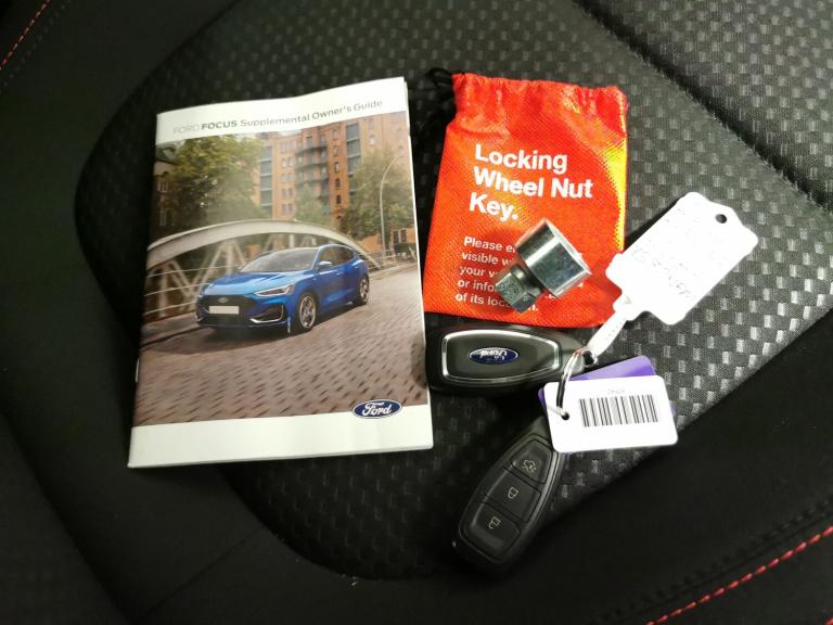 Discover the sporty Ford Focus ST-Line in striking red, featuring Apple CarPlay and built-in Sat Nav to keep you connected and on course. Enjoy effortless entry with Keyless Entry and Keyless Start, plus advanced driver help like Lane Departure Warning and Cruise Control. Parking is a breeze with front and rear sensors. Stay safe and connected with Ford SYNC, Bluetooth, and Ford MyKey system. The perfect hatchback for those who love a blend of technology, style, and driving enjoyment. MOT to 13/11/2026. Visit our website for service history, online valuation, full vehicle specification plus multiple images. This vehicle is VAT qualifying. Any feature/option specified here is from 3rd party data. We cannot guarantee the accuracy of any specification supplied by a 3rd party. We recommend that you physically check the specification of the vehicle on site prior to purchase. This information does not form part of the buying contract. Terms & Conditions apply. We have over 2,000 cars available from our 10 national branches, check our website to see all our stock. Our Trustpilot rating is 4.4/5 with over 9,000 reviews.
