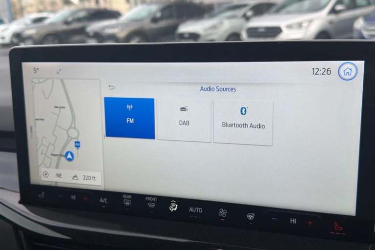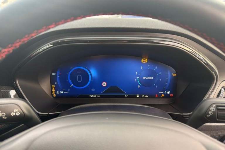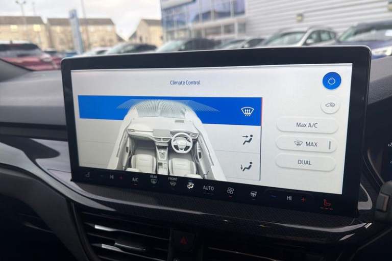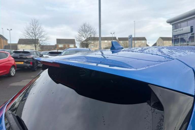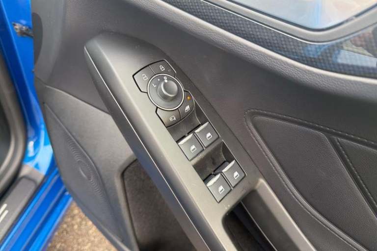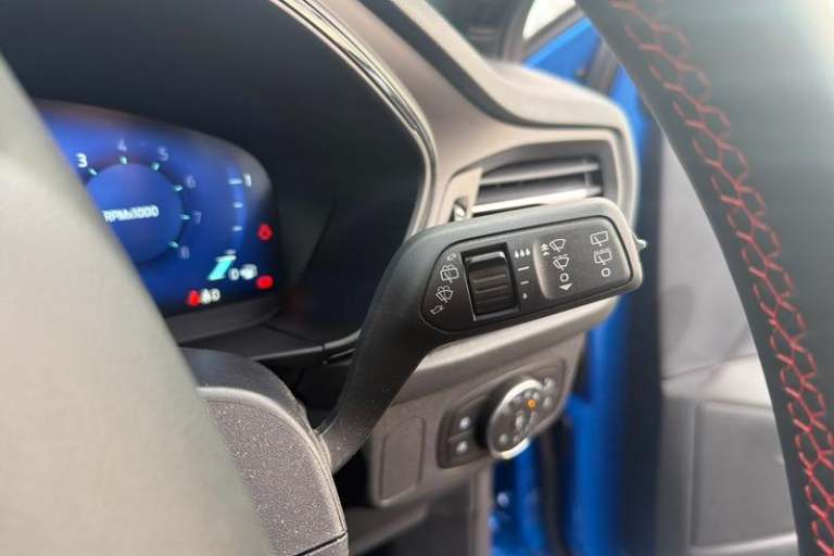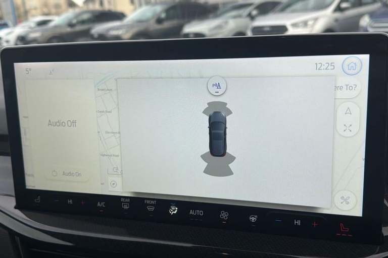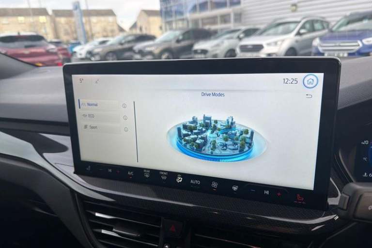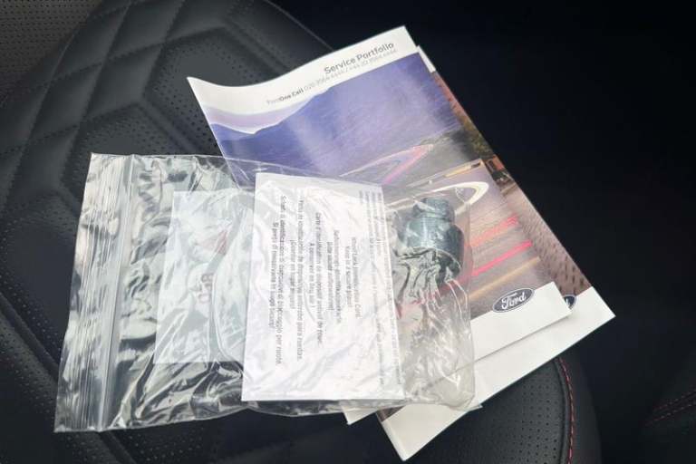 12.3 Digital instrument cluster, Bluetooth system, Digital clock, Easy fuel capless refuelling system, Eco mode, Ford SYNC4 Nav with 13.2'' touchscreen, DAB, Emergency Assistance, Apple Carplay & Android Auto, B&O Premium Audio with 10 speakers, FordPass Connect, Lane keeping system - lane keeping alert and lane keeping aid, PAS, Rev counter, Selectable drive mode, Service interval indicator, Trip computer, Wireless charging pad, Auto headlamps (on/off), Body coloured door handles, Electrically operated front and rear windows with one touch opening and closing, Electrically operated heated power fold door mirrors with puddle lamp with side indicators, Front variable intermittent wipers with electric wash, Heated rear window, LED daytime running lamp, LED rear lamps, LED third brake light, Polished twin tailpipe, Privacy glass, Quickclear heated windscreen, Rain sensor, Rear side wing doors, Tailgate wash/wipe, Unique ST-Line grille, full bodystyling kit, and large body coloured rear spoiler, 3 rear headrests, 3 seat bench in 2nd row, Dual zone electronic air temperature control, Full sensico premium upholstery, Height adjustable front headrests, Isofix child seat preparation, Load through ski hatch, Manual 4-way passenger seat adjusts, Power 4-way driver seat adjust, with power lumbar adjust, Reach + rake adjustable steering column, Single front passenger seat, 3x3 point rear seatbelts, ABS+Electronic Brake force Distribution, Auto hold function, Driver airbag, EDL traction
