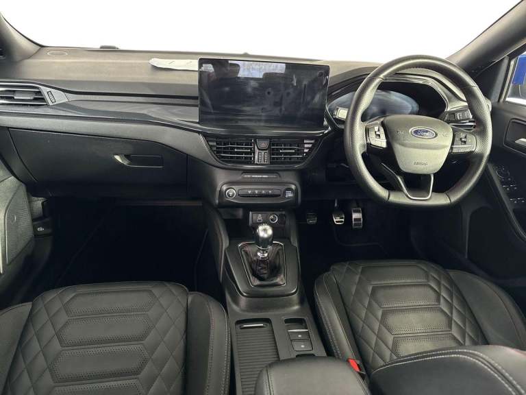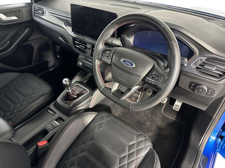 .Key Features: Winter pack Ford SYNC4 Nav with 13.2'' touchscreen Apple Carplay & Android Auto B&O Premium Audio with 10 speakers This 2023 Ford Focus T ST-Line X is a Ford manufacturer approved vehicle, offering you peace of mind. This particular model is a 2023 registration, featuring a 1.0 litre petrol engine and meeting Euro 6 emission standards. The ST-Line X trim level ensures a well equipped and stylish driving experience. The Ford Focus T ST-Line X boasts an impressive 0-62mph acceleration time of just 10.2 seconds, demonstrating its responsive performance. This acceleration figure indicates that this Focus offers a more dynamic driving experience compared to many other vehicles in its class. It combines practicality with a sporty feel, making it a compelling choice for everyday driving..12.3'' Digital instrument cluster, Bluetooth system, Digital clock, Easy fuel capless refuelling system, Eco mode, Ford SYNC4 Nav with 13.2'' touchscreen, DAB, Emergency Assistance, Apple Carplay & Android Auto, B&O Premium Audio with 10 speakers, FordPass Connect, Lane keeping system - lane keeping alert and lane keeping aid, PAS, Rev counter, Selectable drive mode, Service interval indicator, Trip computer, Wireless charging pad, Sports tuned suspension, 2 USB ports, Auto headlamps (on/off), Body coloured door handles, Electrically operated front and rear windows with one touch opening and closing, Electrically operated heated power fold door mirrors with puddle lamp with side indicators, Front variable intermittent wipers with electric wash, Heated rear window, LED daytime running lamp, LED rear lamps, LED third brake light, Polished twin tailpipe, Privacy glass, Quickclear heated windscreen, Rain sensor, Rear side wing doors, Tailgate wash/wipe, Unique ST-Line grille, full bodystyling kit, and large body coloured rear spoiler, 3 rear headrests, 3 seat bench in 2nd row, Dual zone electronic air temperature control, Full sensico premium upholstery, Height adjustable front headrests, Isofix child seat preparation, Load through ski hatch, Manual 4-way passenger seat adjusts, Power 4-way driver seat adjust, with power lumbar adjust, Reach + rake adjustable steering column, Single front passenger seat, Winter pack - Focus, 3x3 point rear seatbelts, ABS+Electronic Brake force Distribution, Auto hold function, Driver airbag, EDL traction control, Electronic parking brake, Electronic stability control, Front and rear seatbelt reminder, Front inertia reel height
