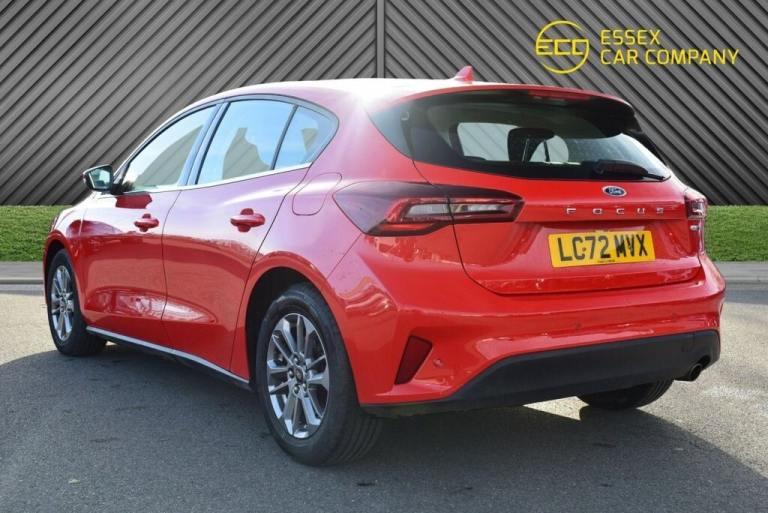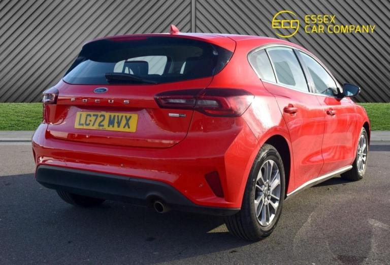 Ford Focus Titanium Hatchback combines hybrid efficiency, cutting-edge technology, and everyday practicality. Powered by a 1.0L EcoBoost MHEV petrol engine delivering 125 PS, paired with a DCT automatic transmission, it complies with Euro 6 emissions standards for a smooth and eco-friendly driving experience. This model is equipped with stylish 16-inch 6x2-spoke dark sparkle alloy wheels and advanced features, including front and rear parking sensors for easy maneuvering. The Ford SYNC4 navigation system with a 13.2-inch touchscreen offers seamless connectivity and intuitive control. Cruise control with adjustable speed limiter and Lane-Keeping Aid with Lane-Keeping Assist ensure a safer and more comfortable drive. Contact Essex Car Company today to arrange a test drive or learn more about this feature-rich and efficient hatchback. We offer Click & Collect and Click & Deliver anywhere in the UK. You can reserve this vehicle for just £99, this is fully refundable if you do not purchase the car. Previous Keeper(s) Guidance This car may have been previously owned by a car leasing company and may have had more than one driver. For specific details please speak to a member of our team. .16in Alloy Wheels - 6x2 Spoke - Dark Spa, Parking Sensor - Front and Rear, Ford SYNC4 Navigation with 13.2in Touchs, Cruise Control with Adjustable Speed Lim, Lane-Keeping Aid with Lane-Keeping Assis, 16in Alloy Wheels - 6x2 Spoke - Dark Sparkle - High Gloss Finish, 4.2in Colour TFT Ice Blue Illumination Analogue Cluster with Trip Computer, ABS - Anti-lock Braking System, Acoustic Laminated Windscreen, Airbags - Driver and Front Passenger, Airbags - Front Side Impact, Airbags - Front and Rear Side Curtain, Automatic Dimming Rear View Mirror, Body Colour Bumpers, Bright Finish on Lower Door Line, Centre Console - Premium with Sliding Armrest - Cupholder with Sliding Cover, Child Proof Rear Door Locks, Courtesy Light - Ambient LED Courtesy Lighting, Cruise Control with Adjustable Speed Limiter, DEATC - Dual-Zone Electronic Automatic Temperature Control, Door Mirrors - Electrically-Operated - Heated - Power-Foldable - Puddle Lights - Side Indicators, EBA - Emergency Brake Assist, ESC - Electronic Stability Control, Electric Parking Brake, Floor Mats - Front Velour, Ford Easy Fuel System, Ford Key Free System - Keyless Entry with Keyless Start, Ford SYNC4 Navigation with 13.2in Touchscreen, Front Passenger Airbag Deactivation Switch, Front Seat - Passenger 2-Way Manual Adjustment, Front Seatback Map Pockets - Driver and Passenger, Front Seats - Sports Style V-shape with High Bolster, Front and Rear Seatbelt Minder, Full Fixed LED Headlight with LED Daytime Running Lights, Gearshift Knob - Sensico-Trimmed, Grille with Chrome Surround and Horizontal Bars, Headlights - Automatic On-Off, Hill Start Assist, Intelligent Speed Assistance, LED Front Fog Lights with Cornering Function, Lane-Keeping Aid with Lane-Keeping Assist, Load Compartment Area Cover, Load Floor Carpet, Locking Wheel Nuts, MyKey, Overhead Console - Medium Length with Front and Rear LED Courtesy Lights, Parking Sensor - Front and Rear, Power Steering, Pre-Collision Assist with Autonomous Emergency Braking and Pedestrian-Cyclist Detection, Quickclear Heated Windscreen, Rain Sensitive Windshield Wipers, Rear Fog Lamps, Rear Lights - LED, Rear Seat - 60-40 Split Folding Seats, Remote Central-Double Locking, Seats - Drivers 4-Way Manual Adjustment, Seats - ISOFIX Mounting Provision for Child Seats, Selectable Drive Mode, Spare Wheel - Mini Steel, Standard Suspension, Steering Wheel - 3-Spoke Sensico Trimmed with Integrated Audio Controls, Tailgate Wash-Wipe, Thatcham Category Alarm with Power Door Dead