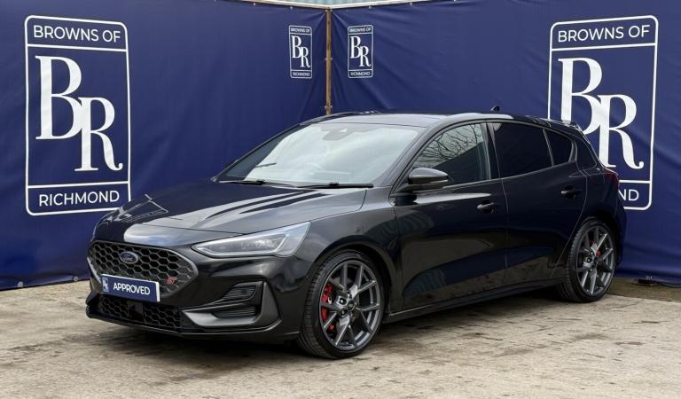 Browns of Richmond are delighted to offer this excellent 2023 Ford Focus ST, finished in striking Agate Black. The Focus ST continues to be one of the standout hot hatches on the market, offering genuine performance, everyday usability and strong levels of standard and optional equipment.This example has been lightly modified with a resonator delete, giving the car a deeper, fruitier exhaust note without being overbearing, perfectly complementing the ST’s sporting character while retaining everyday drivability.Powered by Ford’s turbocharged petrol engine, the Focus ST delivers strong performance with sharp throttle response and excellent mid range punch. The chassis is equally impressive, offering confident handling, strong grip and a planted feel that makes the ST just as enjoyable on a twisty road as it is on longer motorway journeys.This car is particularly well specified, benefitting from a number of desirable factory options. These include the Ford Performance Pack, Driver Assistance Pack, Blind Spot Information System, Head Up Display, Parking Pack, and the highly sought after openable panoramic glass roof, which adds light and a real sense of space to the cabin.Inside, the Focus ST offers a driver focused layout with supportive sports seats, clear digital displays and intuitive controls. The technology is easy to use, with navigation, media and driver aids seamlessly integrated to create a refined yet engaging driving environment.This vehicle benefits from a full service history, reflecting careful ownership and consistent maintenance. It has also been prepared for sale and passed our comprehensive 114 point inspection, ensuring it meets our standards before being offered to its next owner.At Browns of Richmond, we take pride in sourcing well maintained, well specified cars and presenting them correctly.Contact us today to arrange a test drive or to find out more.The advertised price is plus a £199 fee for the Browns Signature Care Package. Full details available at brownsofrichmond.co.uk/browns-signature-care.