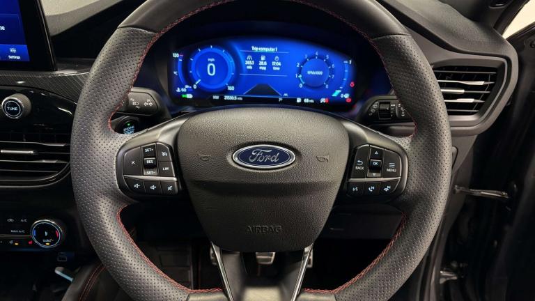Magnetic, Wireless Charging, 10-Way Power Adjustable Drivers Seat, 2nd Row Sliding Seats, 8-Way Manual Passenger Seat including Lumbar Support and Height Adjust, Air Conditioning - Electronic Automatic Temperature Control - EATC, Aluminium Foot Pedals - ST-Line Design, Ambient Lighting, Auto Dimming Rear View Mirror, Auto Wipers, Centre Console with Electronic Parking Brake, Digital Colour 12.3in Instrument Cluster, Driver and Passengers Sun Visor with Illumination, Electrical Charging Point in Second Row, Front Seats - 2-Way Manual Height Adjust Passive Head Restraints, Front Seats - Drivers and Passengers Seatback Map Pockets, Front Seats - Sports Style V-shape with High Bolster, Front and Rear Floor Mats with Red Stitching, Gear Shift - Unique Sensico-Trimmed Knob with Satin Aluminium Insert and Red Gaiter Stitching, Glovebox Lights, Handsfree Power Tailgate, Headliner - Sports Dark, Heated Driver and Passenger Seats, Heated Rear Seats, Heated Steering Wheel, Load Compartment - Lights, Load Compartment - Tie Down Hooks, Load Compartment Carpet, Lower Door Frame Beltline - Black, Mini Overhead Console with Sunglasses Holder Bin, MyKey, Rear Duct on B-Pillar, Rear Seat - 60-40 Split Folding Seats, Rear Seat Centre Head Restraint, Rear Seats - 2-Way Head Restraint Up-Down, Rear Seats - Folding Centre Armrest with Integrated Cup Holder, Rear Seats - Sliding Seat Adjust Tracks - Fore-Aft, Remote Tailgate Release, Removable Package Tray, Single Rear Fog Light, Steering Column - Rake and Reach Adjustment, Steering Wheel - ST-Line Sports-Style Perforated Sensico-Trimmed with Red Stitching, Upper Door Frame Beltline - Black, Winter Pack, 12V Power Point in Floor Console, 12v Power Point in Cargo Area, 12v Socket - Voltage Regulator, Cruise control with speed limiter, EPAS - Electric Power Assisted Steering, Ford SYNC3 DAB Navigation System, Front and Rear Parking Sensors, Full LED Headlamps, Headlights - Automatic Follow Me Home Lighting, Headlights - Automatic High Beam Assist, Headlights - Levelling System - Manual, Headlights - Unique Bending, High-Mounted Brake Light, LED Daytime Running Lights, LED Fog Lights - Front, Pre-Collision Assist with Autonomous Emergency Braking, Rear Lights - LED, Rear View Camera, Selectable Drive Modes, Suspension - Sports, Trip Computer, Tyre Pressure Monitoring System, ECall, 20in Alloy Wheels - Black Ford Performance, Aluminium - Finish Front Scuff Plates with ST-Line Script, Black Roof Rails, Dual Exhaust Tailpipes with