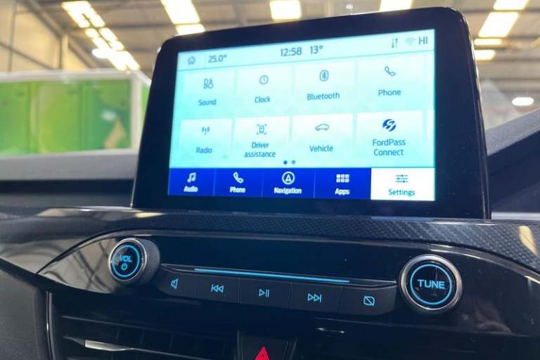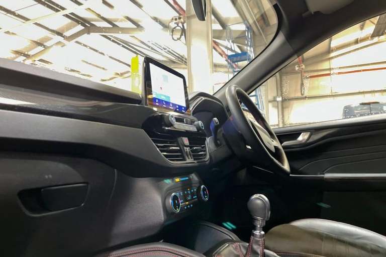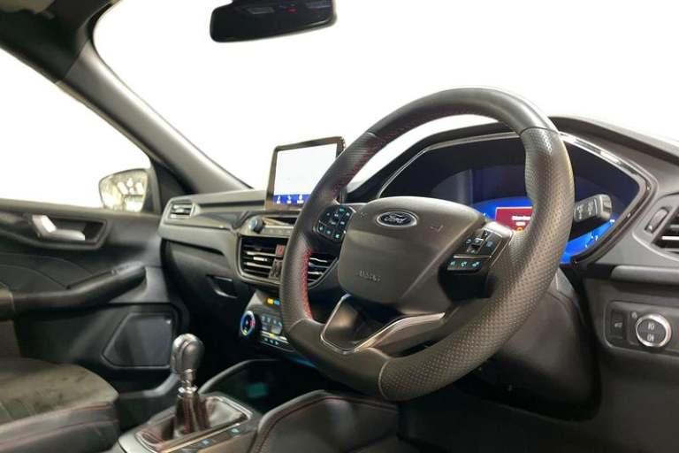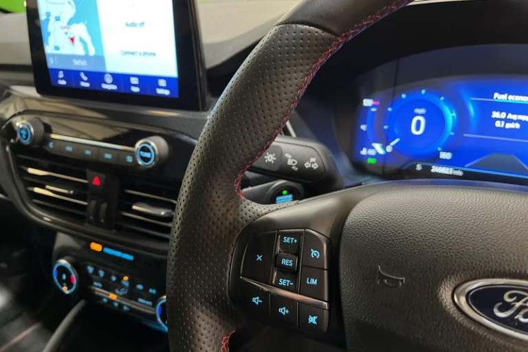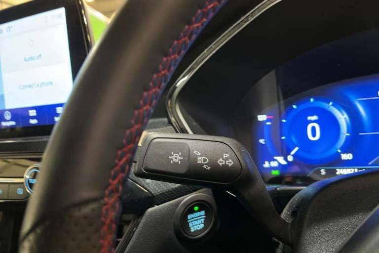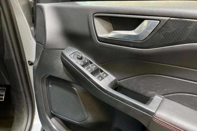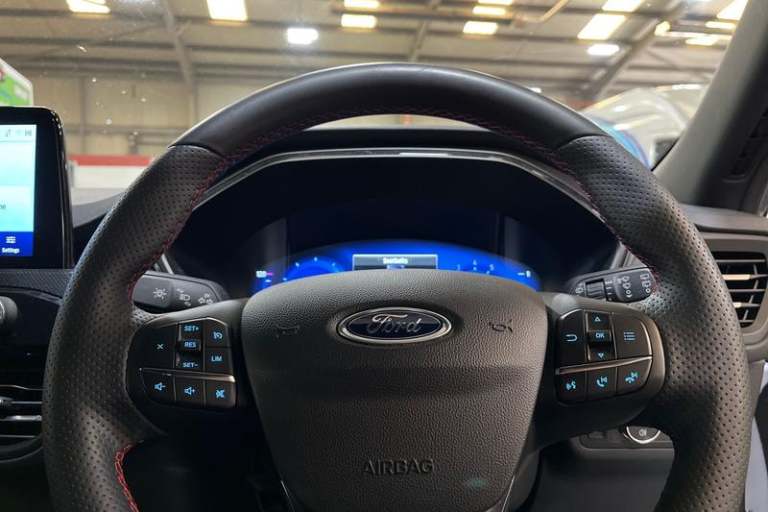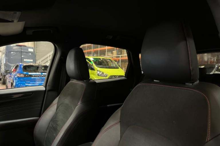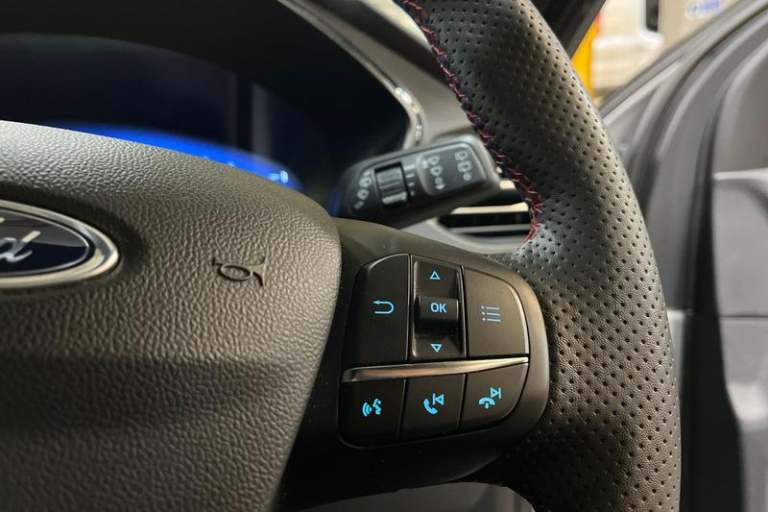 12.3 digital colour instrument cluster, Ford easy fuel, Ford SYNC 3 with 8 TFT LCD touchscreen, App Link, andriod auto/apple carPlay, emergency assistance and navigation with Ford pass connect, Front and rear parking sensors, Hands free power tailgate, Lane keeping aid with lane departure warning, Power assist steering, Rear view camera, Selectable drive modes, Service interval indicator, Auto headlamps with high and low beam, Black roof rails, Body colour bumpers, Day/night rear view mirror, Front LED fog lamps, Large rear roof spoiler, LED daytime running lights, LED rear lights, Power folding, electrically adjustable and heated door mirrors with puddle lights, Power front/rear windows with global close, Quickclear heated windscreen, Rain sensing wipers, Rear privacy glass, Rear side wing doors, Rear wiper, ST Line body styling kit with unique front and rear fascia and bumper, rear painted diffuser, front painted skid plates, dark mesh upper grille, ST Line front scuff plates, Third brake light, Twin exhausts, 2nd row sliding seats with 60:40 split, Alloy pedals, Centre console with electronic parking brake, Dark headlining and pillars, Electronic automatic temperature control (EATC), Flat bottomed leather steering wheel in sensico with red stitching, Front and rear head restraints, Partial premium touch Sensico with black cloth inserts and red stitching, Rear centre head restraint, Single front passenger seat, Sports seats, ST Line front and rear floor mats, ST Line