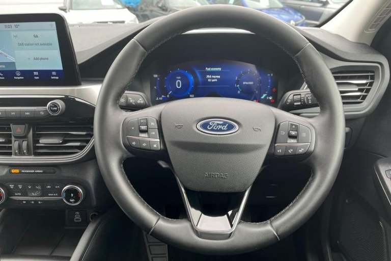 12.3 digital colour instrument cluster, Ford easy fuel, Ford SYNC 3 with 8 TFT LCD touchscreen, App Link, andriod auto/apple carPlay, emergency assistance and navigation with Ford pass connect, Front and rear parking sensors, Hands free power tailgate, Lane keeping aid with lane departure warning, Power assist steering, Rear view camera, Selectable drive modes, Service interval indicator, Auto dimming rear view mirror, Auto headlamps with high and low beam, Body colour bumpers, Front LED fog lamps, LED daytime running lights, LED rear lights, Power folding, electrically adjustable and heated door mirrors with puddle lights, Power front/rear windows with global close, Quickclear heated windscreen, Rain sensing wipers, Rear privacy glass, Rear side wing doors, Rear spoiler, Rear wiper, Silver roof rails, Third brake light, Twin exhausts, 2nd row sliding seats with 60:40 split, Ambient lighting, Centre console with electronic parking brake, Electronic automatic temperature control (EATC), Front and rear floor mats, Front and rear head restraints, Partial premium touch Sensico with black cloth inserts, Rear centre head restraint, Single front passenger seat, Sports seats, 3x3 point rear seatbelts, Airbags - front driver/passenger, front and rear curtain, Drivers knee airbag, Electronic stability control (ESC) and ABS, Ford MyKey Gen 2 safety system, Manual child proof rear door locks, Post collision braking, Pre collision assist with autonomous emergency braking, Rear seat