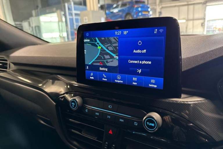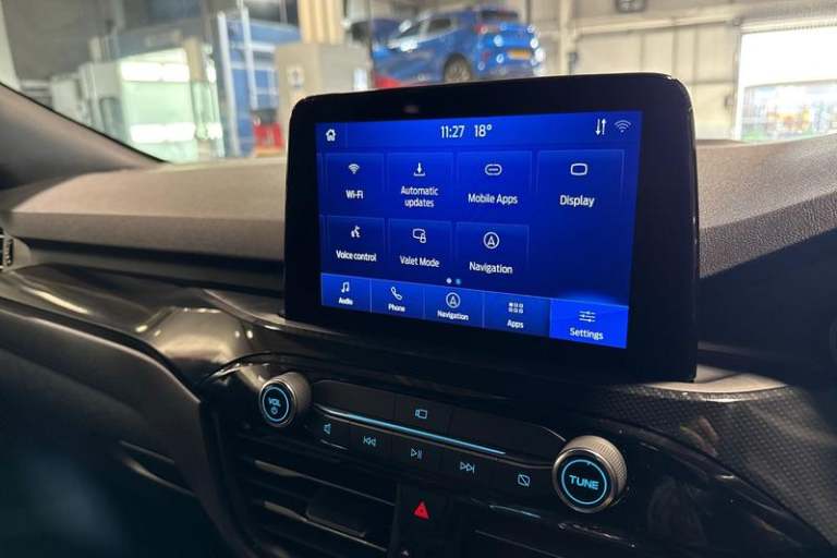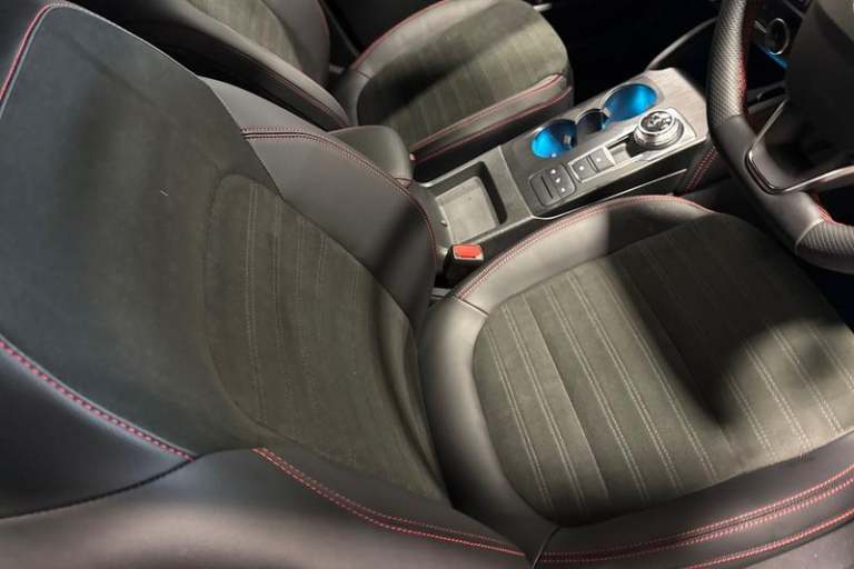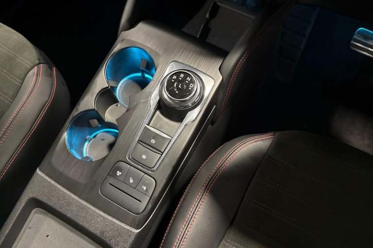 12.3 digital colour instrument cluster, Ford easy fuel, Ford SYNC 3 with 8 TFT LCD touchscreen, App Link, andriod auto/apple carPlay, emergency assistance and navigation with Ford pass connect, Front and rear parking sensors, Hands free power tailgate, Lane keeping aid with lane departure warning, Power assist steering, Rear view camera, Selectable drive modes, Service interval indicator, Auto headlamps with high and low beam, Black roof rails, Body colour bumpers, Day/night rear view mirror, Front LED fog lamps, Large rear roof spoiler, LED daytime running lights, LED rear lights, Power folding, electrically adjustable and heated door mirrors with puddle lights, Power front/rear windows with global close, Quickclear heated windscreen, Rain sensing wipers, Rear privacy glass, Rear side wing doors, Rear wiper, ST Line body styling kit with unique front and rear fascia and bumper, rear painted diffuser, front painted skid plates, dark mesh upper grille, ST Line front scuff plates, Third brake light, Twin exhausts, 2nd row sliding seats with 60:40 split, Alloy pedals, Centre console with electronic parking brake, Dark headlining and pillars, Electronic automatic temperature control (EATC), Flat bottomed leather steering wheel in sensico with red stitching, Front and rear head restraints, Partial premium touch Sensico with black cloth inserts and red stitching, Rear centre head restraint, Single front passenger seat, Sports seats, ST Line front and rear floor mats, 3x3 point