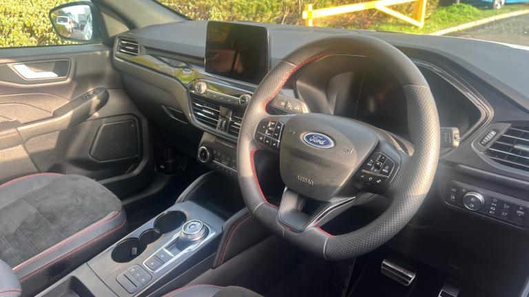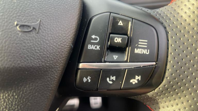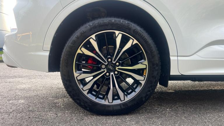 .Quickclear heated windscreen, Rear wiper, Power front/rear windows with global close, Rear privacy glass, Rain sensing wipers, Red brake calipers, Electronic stability control (ESC) and ABS, Dynamic brake support, Sports suspension, Front and rear parking sensors, Power assist steering, Lane keeping aid with lane departure warning, Selectable drive modes, Pre collision assist with autonomous emergency braking, Lane centering assist, 360 degree camera, Cross traffic alert with active braking, Ford easy fuel, Service interval indicator, e-Call (emergency call), 12.3"" digital colour instrument cluster, Ford SYNC 4 Navigation with 13"" touchscreen, DAB radio, emergency assistance, Andriod Auto/Apple CarPlay, 5G modem & Ford Pass connect, Clear exit assist, Power heated folding door mirrors with puddle lights, memory function and camera, B&O premium audio system with 10 speakers, subwoofer and 2 USB ports, Black roof rails, Body colour bumpers