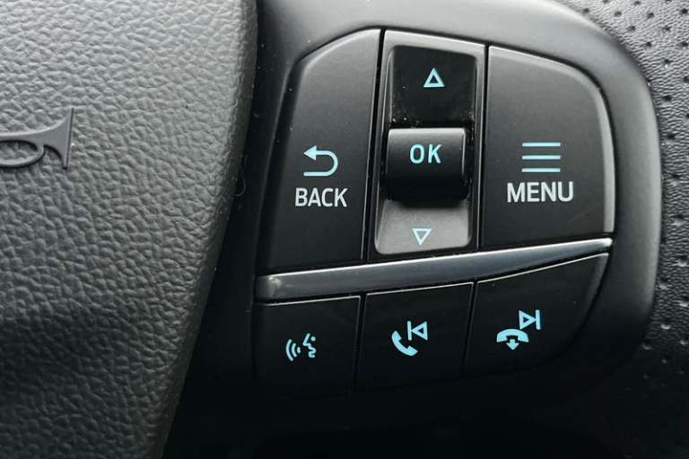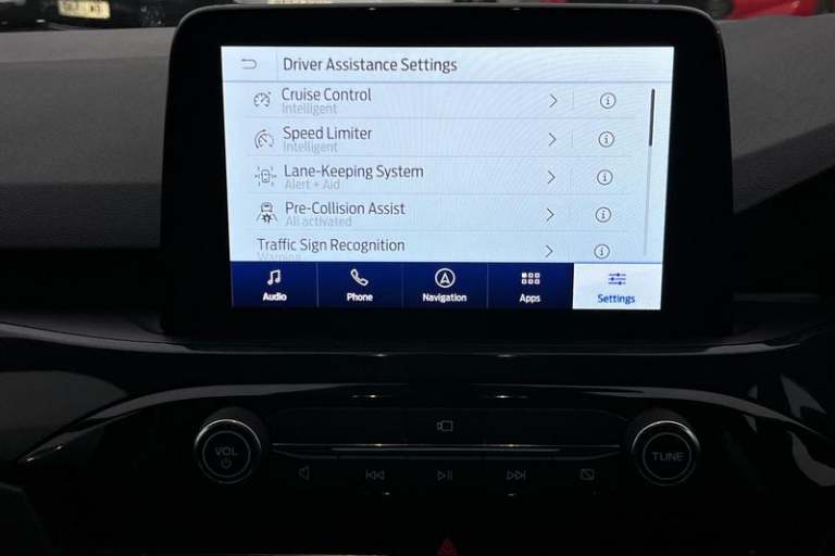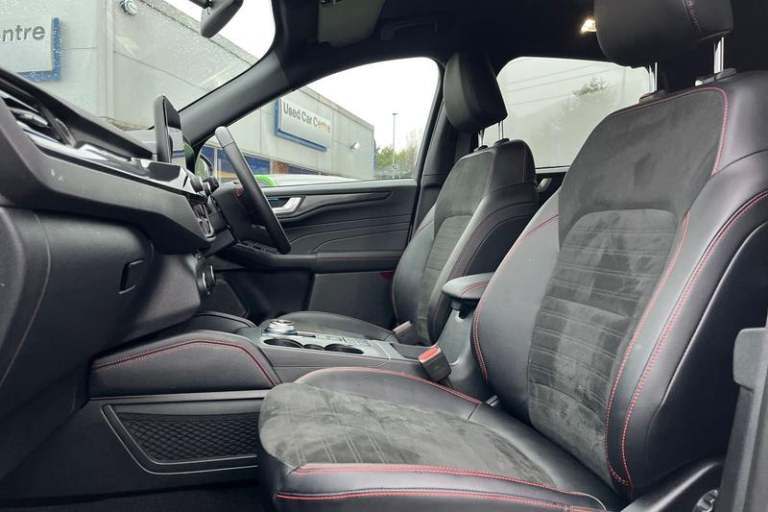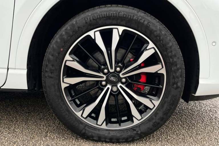 12.3 digital colour instrument cluster, Ford easy fuel, Ford SYNC 3 with 8 TFT LCD touchscreen, App Link, andriod auto/apple carPlay, emergency assistance and navigation with Ford pass connect, Front and rear parking sensors, Geo awareness, Hands free power tailgate, Lane keeping aid with lane departure warning, Power assist steering, Rear view camera, Selectable drive modes, Service interval indicator, Auto headlamps with high and low beam, Black roof rails, Body colour bumpers, Day/night rear view mirror, Front LED fog lamps, Large rear roof spoiler, LED daytime running lights, LED rear lights, Power folding, electrically adjustable and heated door mirrors with puddle lights, Power front/rear windows with global close, Quickclear heated windscreen, Rain sensing wipers, Rear privacy glass, Rear side wing doors, Rear wiper, ST Line body styling kit with unique front and rear fascia and bumper, rear painted diffuser, front painted skid plates, dark mesh upper grille, ST Line front scuff plates, Third brake light, Twin exhausts, 2nd row sliding seats with 60:40 split, Alloy pedals, Centre console with electronic parking brake, Dark headlining and pillars, Electronic automatic temperature control (EATC), Flat bottomed leather steering wheel in sensico with red stitching, Front and rear head restraints, Partial premium touch Sensico with black cloth inserts and red stitching, Rear centre head restraint, Single front passenger seat, Sports seats, ST Line front and rear floor
