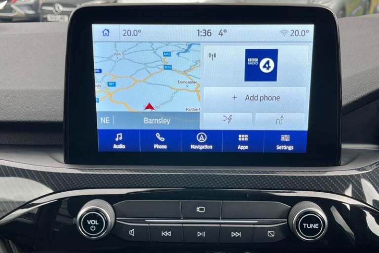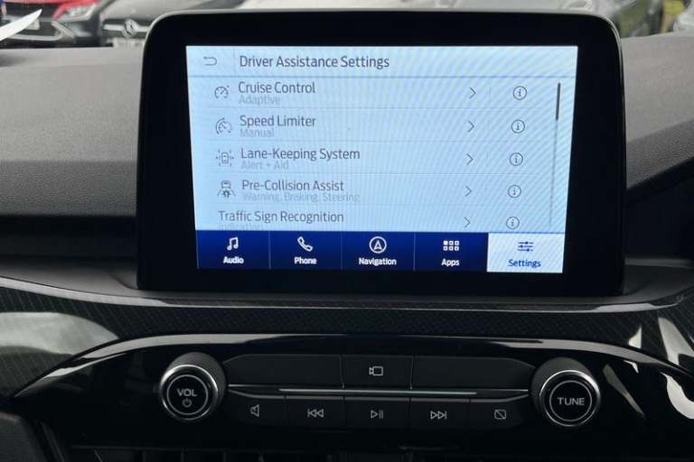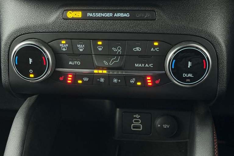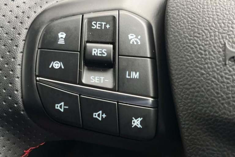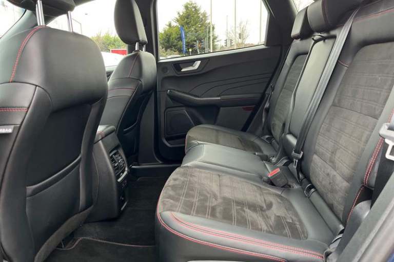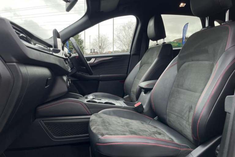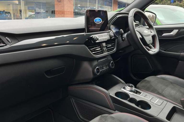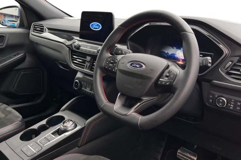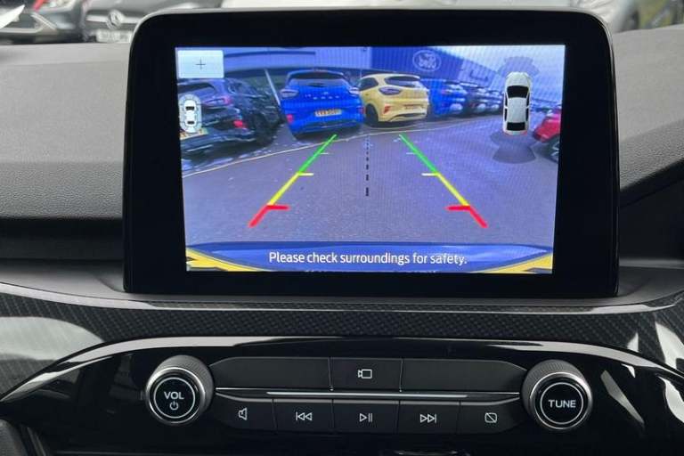12.3 digital colour instrument cluster, Ford easy fuel, Ford SYNC 3 with 8 TFT LCD touchscreen, App Link, andriod auto/apple carPlay, emergency assistance and navigation with Ford pass connect, Front and rear parking sensors, Geo awareness, Hands free power tailgate, Lane keeping aid with lane departure warning, Power assist steering, Rear view camera, Selectable drive modes, Service interval indicator, Auto headlamps with high and low beam, Black roof rails, Body colour bumpers, Day/night rear view mirror, Front LED fog lamps, Large rear roof spoiler, LED daytime running lights, LED rear lights, Power folding, electrically adjustable and heated door mirrors with puddle lights, Power front/rear windows with global close, Quickclear heated windscreen, Rain sensing wipers, Rear privacy glass, Rear side wing doors, Rear wiper, ST Line body styling kit with unique front and rear fascia and bumper, rear painted diffuser, front painted skid plates, dark mesh upper grille, ST Line front scuff plates, Third brake light, Twin exhausts, 2nd row sliding seats with 60:40 split, Alloy pedals, Centre console with electronic parking brake, Dark headlining and pillars, Electronic automatic temperature control (EATC), Flat bottomed leather steering wheel in sensico with red stitching, Front and rear head restraints, Partial premium touch Sensico with black cloth inserts and red stitching, Rear centre head restraint, Single front passenger seat, Sports seats, ST Line front and rear floor