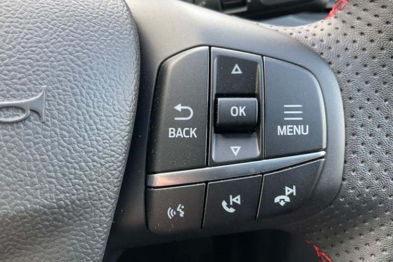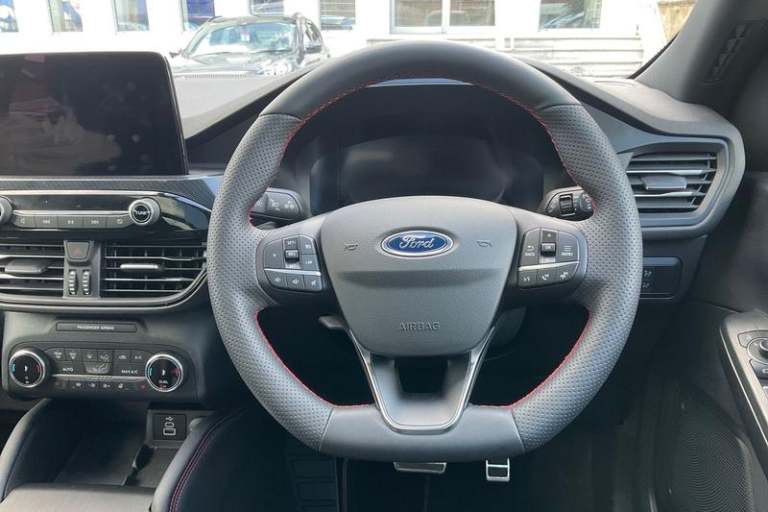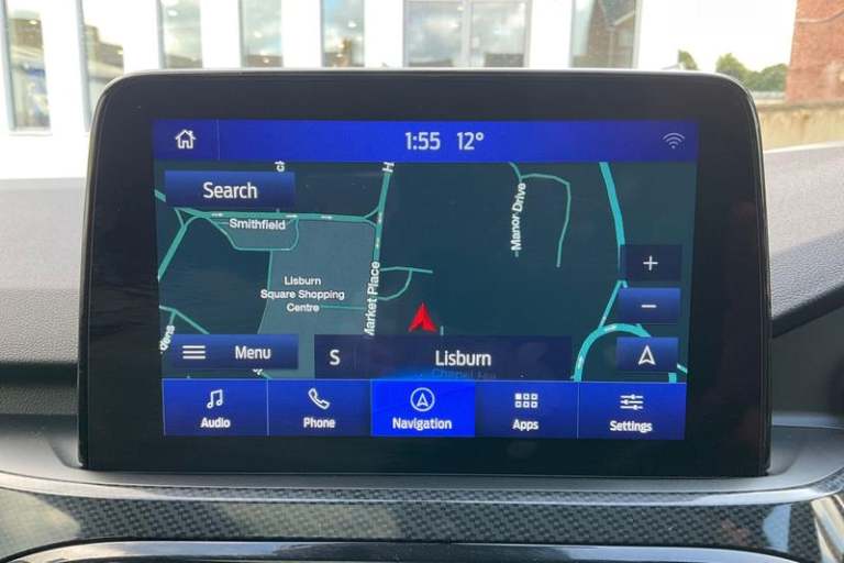 12.3 digital colour instrument cluster, Ford easy fuel, Ford SYNC 3 with 8 TFT LCD touchscreen, App Link, andriod auto/apple carPlay, emergency assistance and navigation with Ford pass connect, Front and rear parking sensors, Geo awareness, Hands free power tailgate, Lane keeping aid with lane departure warning, Power assist steering, Rear view camera, Selectable drive modes, Service interval indicator, Auto headlamps with high and low beam, Black roof rails, Body colour bumpers, Day/night rear view mirror, Front LED fog lamps, Large rear roof spoiler, LED daytime running lights, LED rear lights, Power folding, electrically adjustable and heated door mirrors with puddle lights, Power front/rear windows with global close, Power opening panoramic roof, Quickclear heated windscreen, Rain sensing wipers, Rear privacy glass, Rear side wing doors, Rear wiper, ST Line body styling kit with unique front and rear fascia and bumper, rear painted diffuser, front painted skid plates, dark mesh upper grille, ST Line front scuff plates, Third brake light, Twin exhausts, 2nd row sliding seats with 60:40 split, Alloy pedals, Centre console with electronic parking brake, Dark headlining and pillars, Electronic automatic temperature control (EATC), Flat bottomed leather steering wheel in sensico with red stitching, Front and rear head restraints, Heated passenger and driver seats, Heated rear seats, Heated steering wheel, Partial premium touch Sensico with black cloth inserts and red