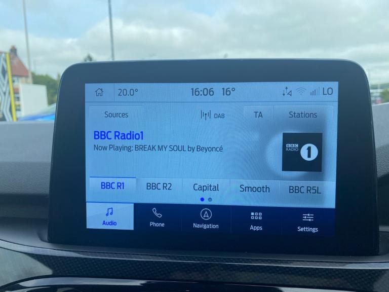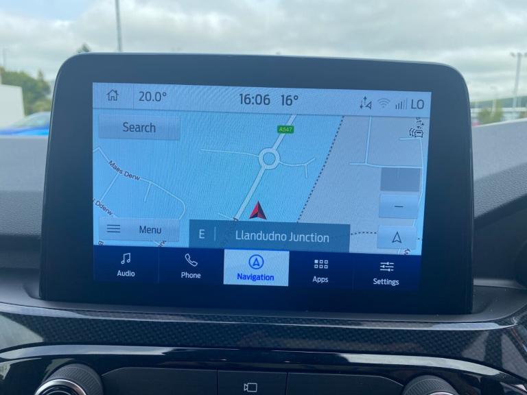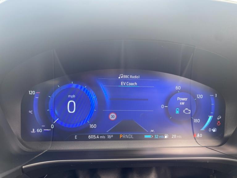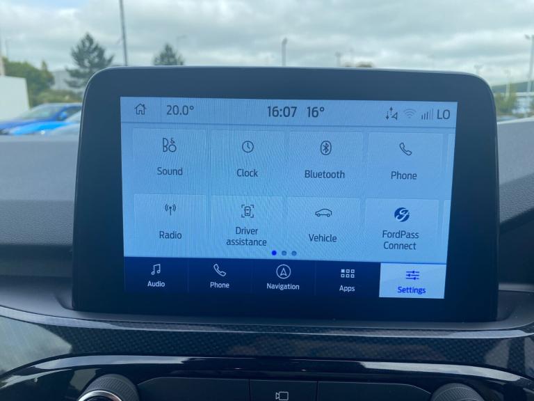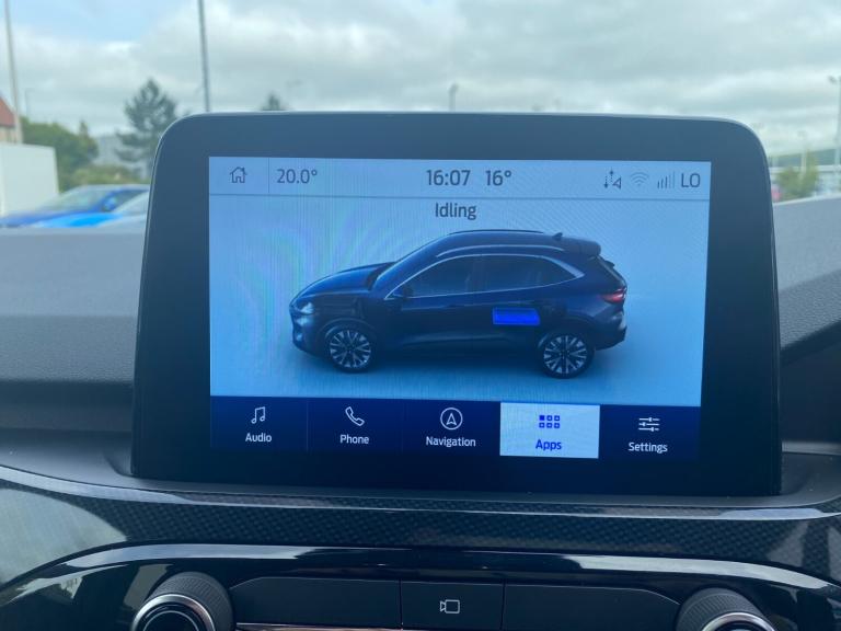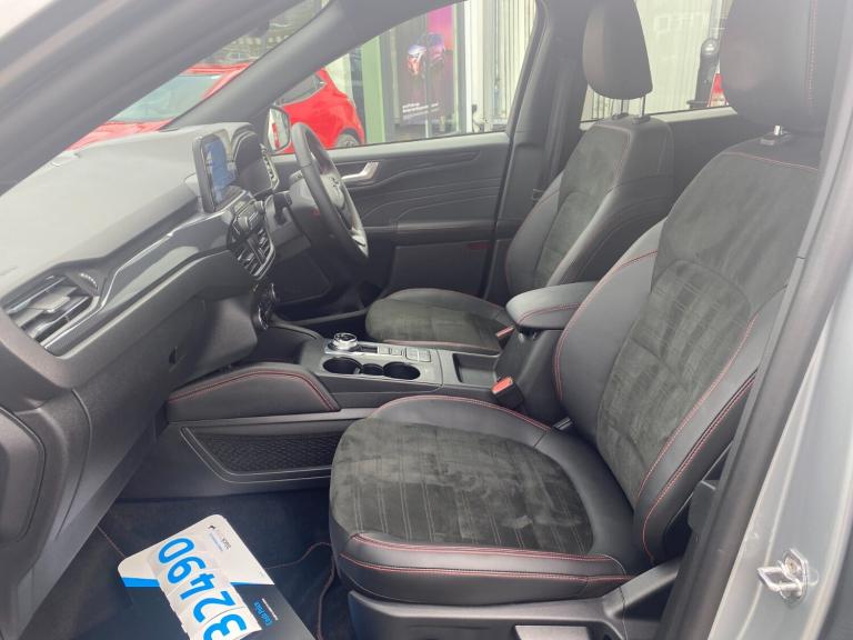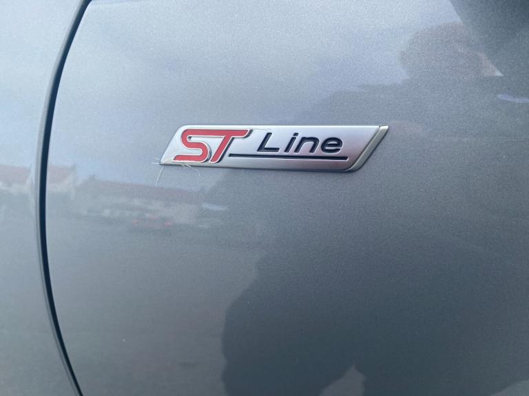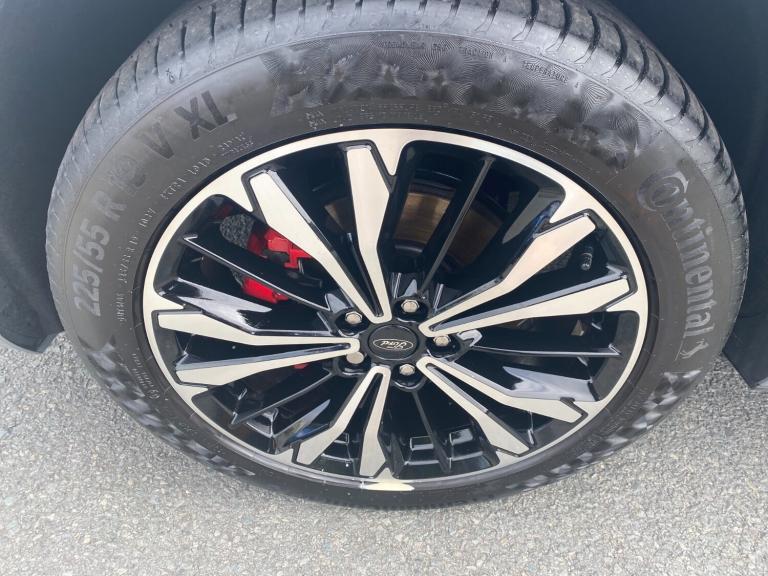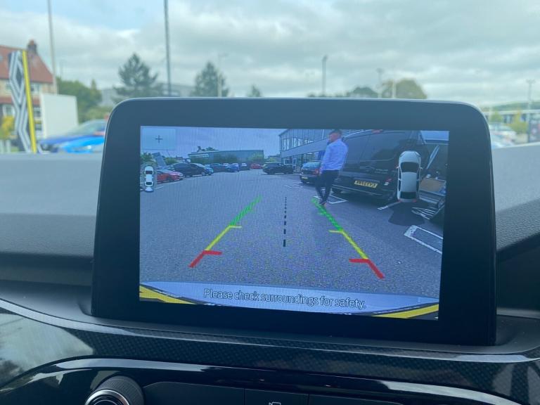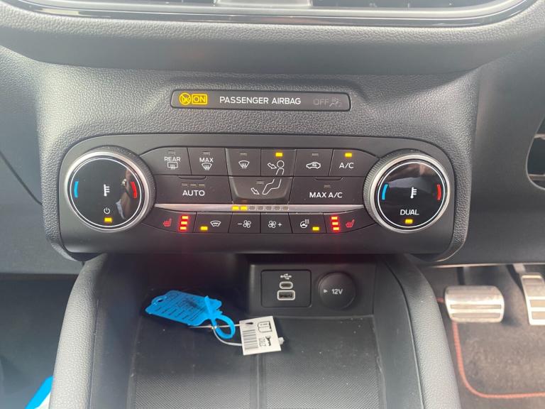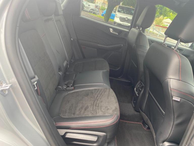 ..12.3'' digital colour instrument cluster, Ford easy fuel, Ford SYNC 3 with 8'' TFT LCD touchscreen, App Link, andriod auto/apple carPlay, emergency assistance and navigation with Ford pass connect, Front and rear parking sensors, Geo awareness, Hands free power tailgate, Lane keeping aid with lane departure warning, Power assist steering, Rear view camera, Selectable drive modes, Service interval indicator, 3-Pin Home charge cable (230V/16A Domestic socket), 3.7 kW monophase on board charger, Sports suspension, Twist beam rear suspension, B&O premium audio system with 10 speakers and subwoofer, 2 USB ports, DAB radio/CD, Auto headlamps with high and low beam, Black roof rails, Body colour bumpers, Day/night rear view mirror, Front LED fog lamps, Large rear roof spoiler, LED daytime running lights, LED rear lights, Power folding, electrically adjustable and heated door mirrors with puddle lights, Power front/rear windows with global close, Power opening panoramic roof, Quickclear heated windscreen, Rain sensing wipers, Rear privacy glass, Rear side wing doors, Rear wiper, ST Line body styling kit with unique front and rear fascia and bumper, rear painted diffuser, front painted skid plates, dark mesh upper grille, ST Line front scuff plates, Third brake light, Twin exhausts, 2nd row sliding seats with 60:40 split, Alloy pedals, Centre console with electronic parking brake, Dark headlining and pillars, Electronic automatic temperature control (EATC), Flat bottomed leather steering wheel in sensico with red stitching, Front and rear head restraints, Heated passenger and driver seats, Heated rear seats, Heated steering wheel, Partial premium touch Sensico with black cloth inserts and red stitching, Rear centre head restraint, Single front passenger seat, Sports seats, ST Line front and rear floor mats, 3x3 point rear seatbelts, Airbags - front driver/passenger, front and rear curtain, Drivers knee airbag, Electronic stability control (ESC) and ABS, Ford MyKey Gen 2 safety system, Manual child proof rear door locks, Post collision braking, Pre collision assist with autonomous emergency braking, Rear seat Occupancy alert, Red brake calipers, Tyre pressure monitoring system, Engine immobiliser, Keyless entry and Ford power start button, Locking wheel nuts, Remote powered central double locking doors, Thatcham category 1 alarm