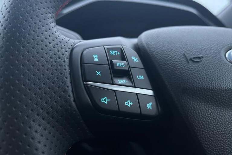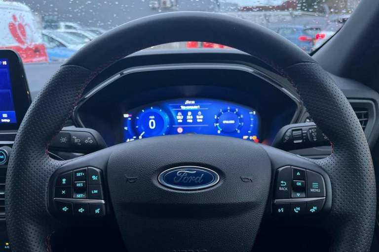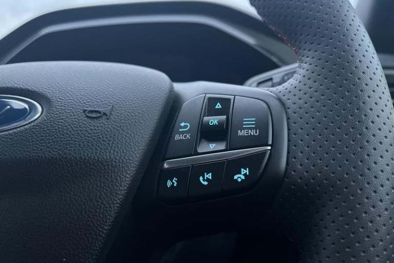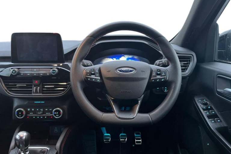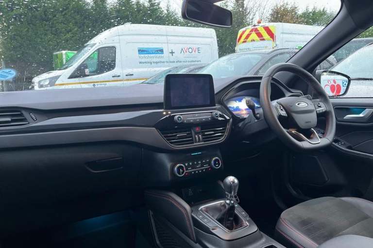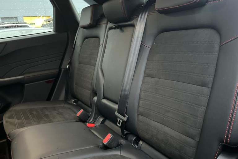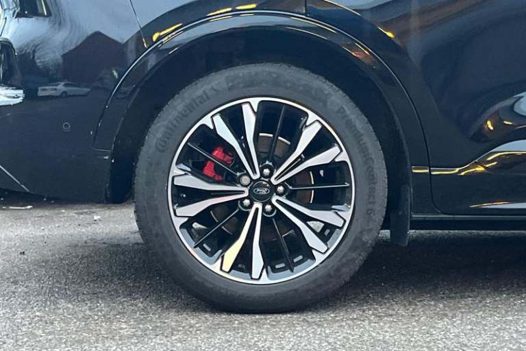 12.3 digital colour instrument cluster, Ford easy fuel, Ford SYNC 3 with 8 TFT LCD touchscreen, App Link, andriod auto/apple carPlay, emergency assistance and navigation with Ford pass connect, Front and rear parking sensors, Hands free power tailgate, Lane keeping aid with lane departure warning, Power assist steering, Rear view camera, Selectable drive modes, Service interval indicator, Auto headlamps with high and low beam, Black roof rails, Body colour bumpers, Day/night rear view mirror, Front LED fog lamps, Large rear roof spoiler, LED daytime running lights, LED rear lights, Power folding, electrically adjustable and heated door mirrors with puddle lights, Power front/rear windows with global close, Power opening panoramic roof, Quickclear heated windscreen, Rain sensing wipers, Rear privacy glass, Rear side wing doors, Rear wiper, ST Line body styling kit with unique front and rear fascia and bumper, rear painted diffuser, front painted skid plates, dark mesh upper grille, ST Line front scuff plates, Third brake light, Twin exhausts, 2nd row sliding seats with 60:40 split, Alloy pedals, Centre console with electronic parking brake, Dark headlining and pillars, Electronic automatic temperature control (EATC), Flat bottomed leather steering wheel in sensico with red stitching, Front and rear head restraints, Heated passenger and driver seats, Heated rear seats, Heated steering wheel, Partial premium touch Sensico with black cloth inserts and red stitching, Rear