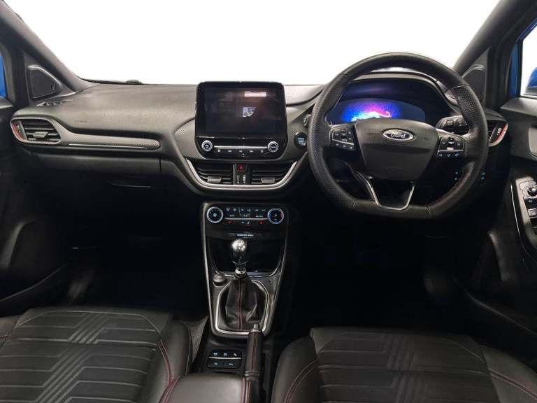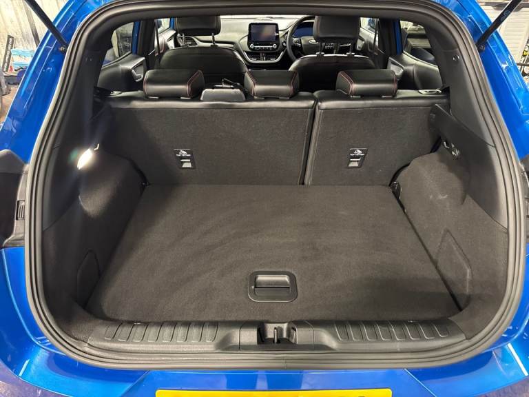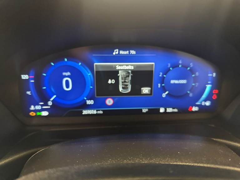 ..Driver impairment monitor, Emergency call service, Ford easy fuel, Full digital 12.3'' instrument cluster, Lane keeping aid with lane departure warning, Power assist steering, Power start button, Rear parking sensor, Selectable drive modes(Normal, Eco, Sport, Slippery and Trail), Speed sign recognition, Sport suspension, Automatic headlights with auto high beam, Automatic rain sensing wipers, Front fog lamps, LED daytime running lights, LED rear lamps, Power foldable heated door mirrors with puddle lamps, Privacy glass to side rear windows and tailgate glass, Quickclear heated windscreen, Rear side wing doors, Rear wiper, ST-Line body styling kit with unique grille and large body colour rear spoiler, Third brake light, 3 seat bench in 2nd row, Centre console with armrest and stowage, Ford megabox extended bootspace, Front and rear head restraints, Front floor mats, Manual 4 way driver seat adjust with lumbar adjustment, Manual 4 way passenger seat with lumbar seat adjustment, Sensico partial premium upholstery, Single front passenger seat, ST-Line flat bottomed sensico leather steering wheel with leather handbrake and aluminium gear knob, Wireless charging pad with electronic air temperature control (EATC), B&O Premium Audio system + Ford SYNC 3 navigation pack - Puma, 3 rear seatbelts, Child safety lock, Electronic stability control (ESC) and hill start assist, Pedestrian/cyclist detection & post-collision braking, Pre collision assist system, Tyre pressure monitoring system (TPMS), Thatcham alarm, Carbon look interior deco spears
