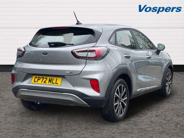 .the key features for the 2023 Ford Puma 1.0 EcoBoost Hybrid mHEV 155 Titanium 5dr 1.0L: Rear parking sensors. Lane keeping aid with lane departure warning. SYNC 3 navigation pack. The 2023 Ford Puma Titanium features a 1.0L EcoBoost mild-hybrid engine producing 155PS, delivering strong performance and excellent fuel efficiency. The Titanium trim adds stylish alloy wheels, LED lighting, and a refined interior with high-quality finishes. Technology includes a touchscreen infotainment system with Apple CarPlay and Android Auto, digital driver display, climate control, and advanced safety features such as lane-keeping assist and rear parking sensors. Practical MegaBox boot storage adds versatility for everyday use..Driver impairment monitor, Emergency call service, Ford easy fuel, Lane keeping aid with lane departure warning, Power assist steering, Power start button, Rear parking sensor, Selectable drive modes(Normal, Eco, Sport, Slippery and Trail), Speed sign recognition, Standard suspension, Automatic headlights with auto high beam, Automatic rain sensing wipers, Body colour rear spoiler, LED rear lamps, Power foldable heated door mirrors with puddle lamps, Projector headlamps with LED day time running lights and front fog lamps, Quickclear heated windscreen, Rear side wing doors, Rear wiper, Third brake light, 3 seat bench in 2nd row, Centre console with armrest and stowage, Electronic automatic temperature control (EATC), Ford megabox extended bootspace, Front and rear head restraints, Front floor mats, Manual 2 way passenger seat adjustment, Manual 4 way driver seat adjust with lumbar adjustment, Sensico leather steering wheel/gear knob/handbrake, Single front passenger seat, Titanium cloth upholstery, Ford SYNC 3 navigation pack - Puma, 3 rear seatbelts, Child safety lock, Electronic stability control (ESC) and hill start assist, Pedestrian/cyclist detection & post-collision braking, Pre collision assist system, Tyre pressure monitoring system (TPMS), Thatcham alarm, 17'' 10 spoke absolute black machined finish alloy wheel