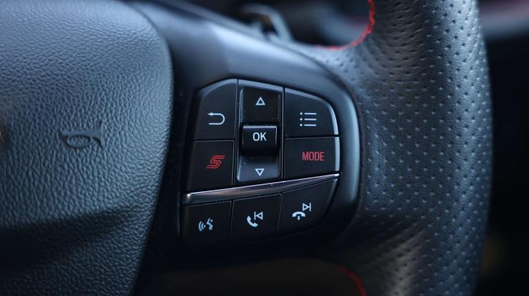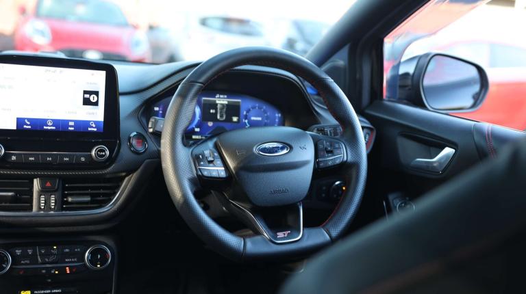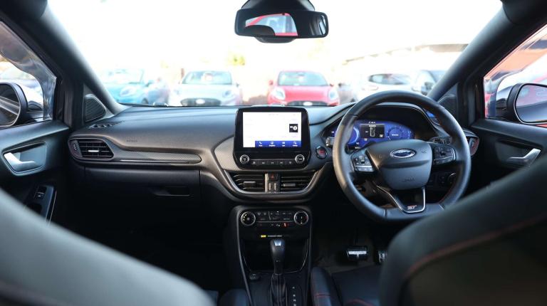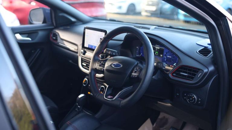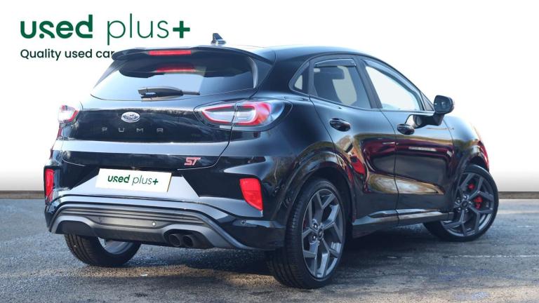 .The Ford Puma 1.5 EcoBoost ST brings serious Ford Performance spirit into a practical, stylish compact SUV. Its punchy engine, engine sound enhancer and ST-tuned suspension give it the sharp, eager feel of a true hot hatchwhile selectable drive modes including Sport and Track let you dial in the excitement whenever the road calls for it. Behind the wheel, the fully digital 12.3-inch instrument cluster, wireless charging pad and Ford SYNC 3 navigation with B&O Premium Audio keep things modern, intuitive and crisp. Intelligent speed assist, lane keeping aid, emergency call service and driver impairment monitoring work quietly in the background to support every journey. Parking is a breeze with front and rear sensors, power-fold heated mirrors with puddle lamps and that signature ST logo projection. And come winter, the Quickclear heated windscreen, Winter Pack and automatic LED lighting keep you moving without fuss. The ST styling gives the Puma real presencedual chrome exhausts, unique body kit with embossed splitter, fixed LED signature headlamps, privacy glass and bold 19'' magnetite alloys deliver a confident, athletic look. Inside, the cabin blends sportiness with comfort: Ford Performance Sensico upholstery, metal grey stitching, alloy pedals, ST flat-bottom wheel and carbon-look trim. Theres flexible practicality too the clever Ford Megabox boosts boot space, plus a comfortable rear bench with ISOFIX and head restraints. Safety is fully covered with ESC, hill start assist, pre-collision assist with pedestrian/cyclist detection, post-collision braking, child safety locks, TPMS and a Thatcham alarm for added peace of mind. A compact SUV with the soul of a performance carthis Puma ST turns every drive into something special..Cruise control with Intelligent speed assist, Driver impairment monitor, Emergency call service, Ford easy fuel, Front and rear parking sensors, Full digital 12.3'' instrument cluster, Lane keeping aid with lane departure warning, Power assist steering, Selectable drive modes (normal, sport, eco, track), Speed sign recognition, Engine sound enhancer, ST suspension, Automatic headlights with auto high beam, Automatic rain sensing wipers, Dual chrome exhaust, Fixed LED signature headlamps, Front fog lamps, LED daytime running lights, LED rear lamps, Power foldable heated door mirrors with puddle lamps and puma logo protection, Privacy glass to side rear windows and tailgate glass, Quickclear heated windscreen, Rear side wing doors,