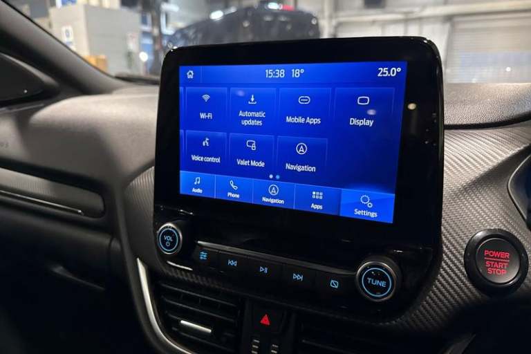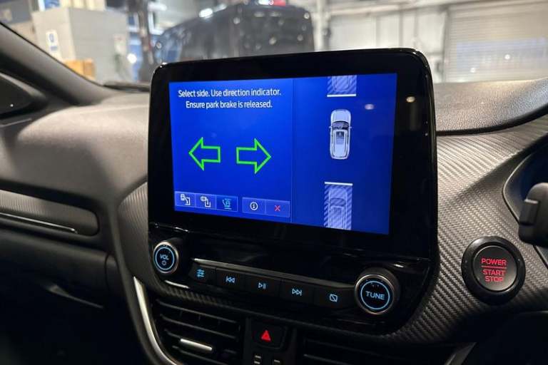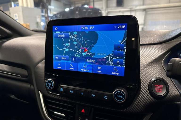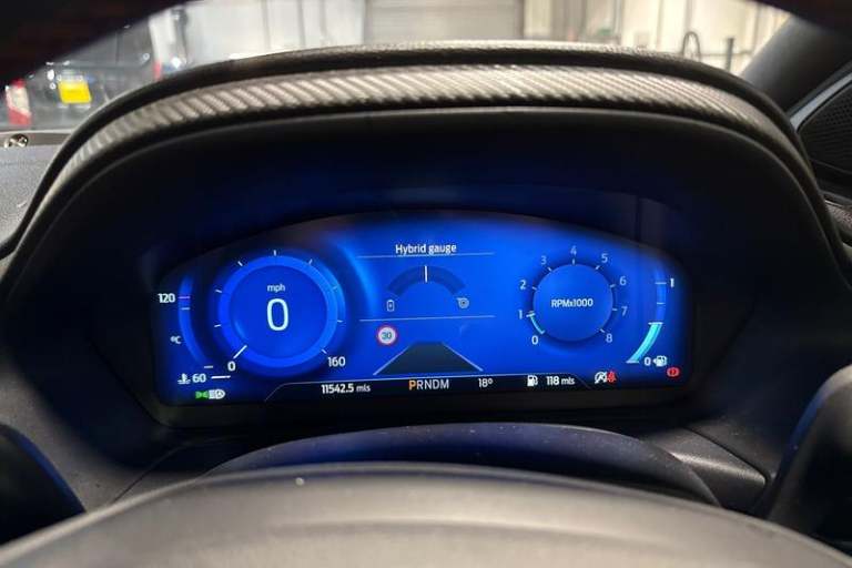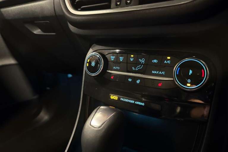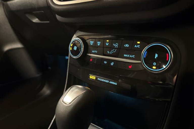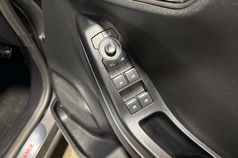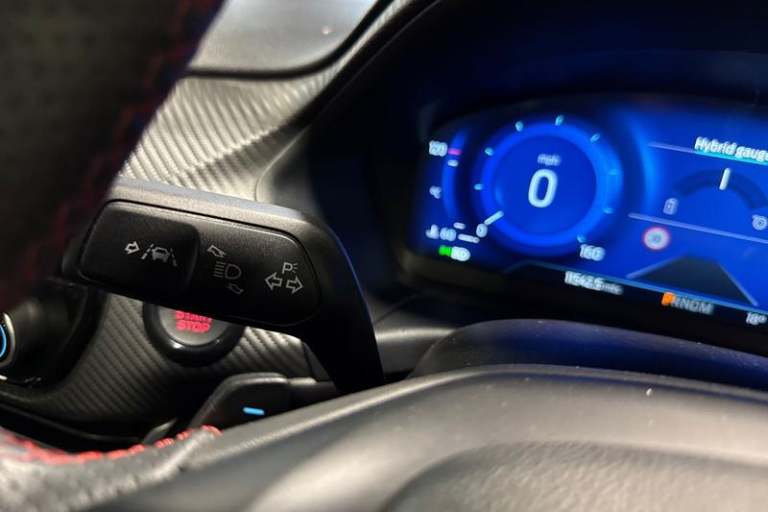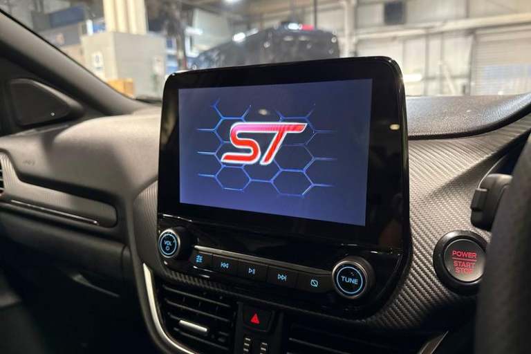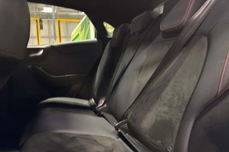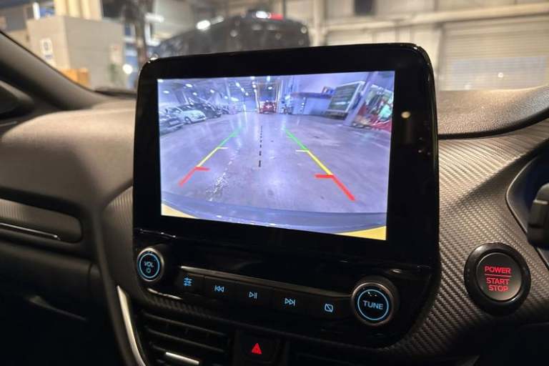 Cruise control with Intelligent speed assist, Driver impairment monitor, Emergency call service, Ford easy fuel, Front and rear parking sensors, Full digital 12.3 instrument cluster, Lane keeping aid with lane departure warning, Power assist steering, Selectable drive modes (normal, sport, eco, track), Speed sign recognition, Automatic headlights with auto high beam, Automatic rain sensing wipers, Dual chrome exhaust, Fixed LED signature headlamps, Front fog lamps, LED daytime running lights, LED rear lamps, Power foldable heated door mirrors with puddle lamps and puma logo protection, Privacy glass to side rear windows and tailgate glass, Quickclear heated windscreen, Rear side wing doors, Rear wiper, ST scuff plates, Third brake light, Unique ST body styling kit including wing mirrors and Ford Performance embossed splitter, 3 seat bench in 2nd row, Alloy sports pedals, Centre console with armrest and stowage, Ford megabox extended bootspace, Ford Performance sensico partial premium leather upholstery with metal grey stitching, Front and rear floor mats, Front and rear head restraints, Manual 6 way driver seat adjust with lumbar adjustment, Manual 6 way passenger seat with lumbar seat adjustment, Single front passenger seat, ST flat bottomed steering wheel with metal grey stitching, ST logo projection, Unique ST gear shift knob, Wireless charging pad with electronic air temperature control (EATC), 3 rear seatbelts, Child safety lock, Electronic stability control (ESC) and