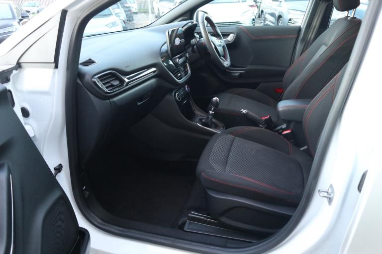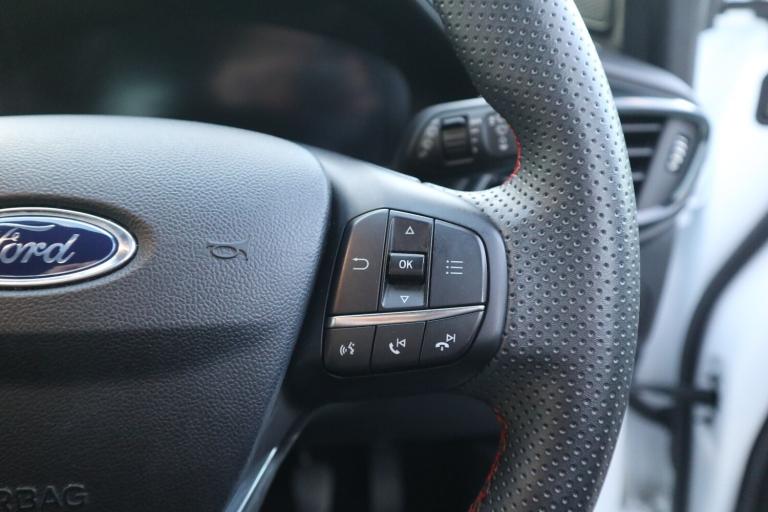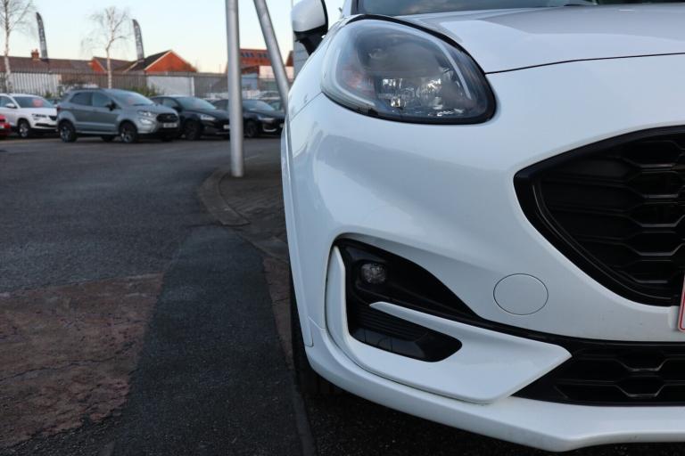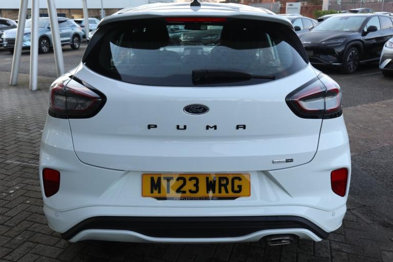 .This 2023 Ford Puma T ST Line offers an exceptional blend of style and efficiency, making it a standout choice for any driver. As a Euro 6 compliant model, this petrol hybrid vehicle is designed with modern environmental standards in mind. Its 1.0 litre engine provides a responsive driving experience, while the ST Line trim ensures a sporty aesthetic and enhanced features. The Ford Puma T ST Line boasts an impressive fuel economy of 52 miles per gallon, a figure that highlights its cost effectiveness for everyday use. Furthermore, its low CO2 emissions demonstrate a commitment to reduced environmental impact compared to many other vehicles in its class. This combination of economical running costs and responsible emissions makes the Puma T ST Line a smart and appealing option..Driver impairment monitor, Emergency call service, Ford easy fuel, Full digital 12.3'' instrument cluster, Lane keeping aid with lane departure warning, Power assist steering, Power start button, Rear parking sensor, Selectable drive modes(Normal, sport, Eco, trail, slippery), Speed sign recognition, Sport suspension, Automatic headlights with auto high beam, Automatic rain sensing wipers, LED rear lamps, Power foldable heated door mirrors with puddle lamps, Projector headlamps with LED day time running lights and front fog lamps, Quickclear heated windscreen, Rear side wing doors, Rear wiper, ST-Line body styling kit with unique grille and large body colour rear spoiler, Third brake light, 3 seat bench in 2nd row, Centre console with armrest and stowage, Ford megabox extended bootspace, Front and rear head restraints, Front floor mats, Manual 2 way passenger seat adjustment, Manual 4 way driver seat adjust with lumbar adjustment, Single front passenger seat, ST- Line cloth trim with red stitching, ST-Line flat bottomed sensico leather steering wheel with leather handbrake and aluminium gear knob, Ford SYNC 3 navigation pack - Puma, 3 rear seatbelts, Child safety lock, Electronic stability control (ESC) and hill start assist, Pedestrian/cyclist detection & post-collision braking, Pre collision assist system, Tyre pressure monitoring system (TPMS), Thatcham alarm