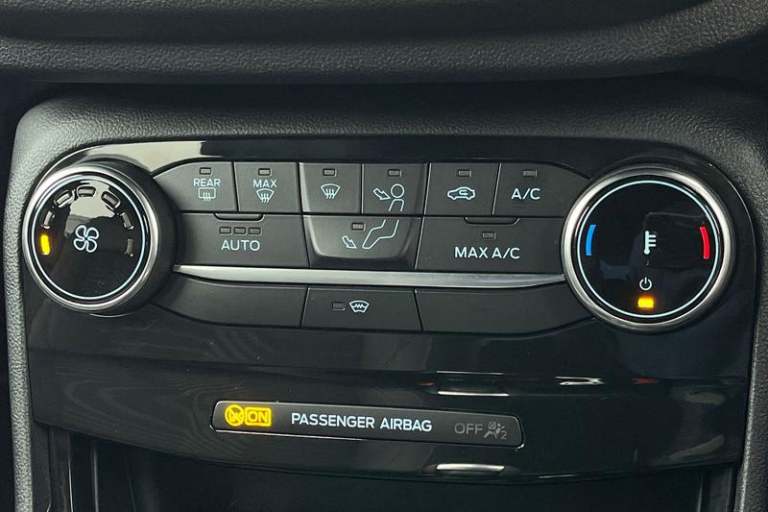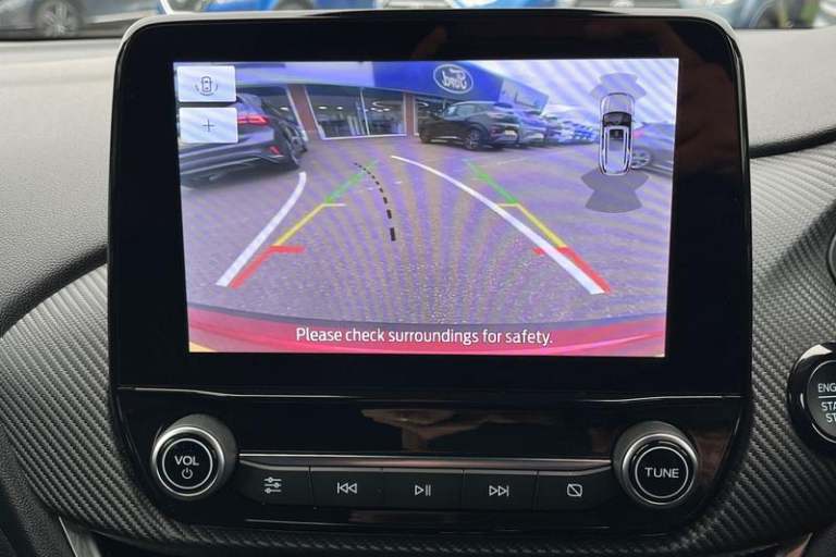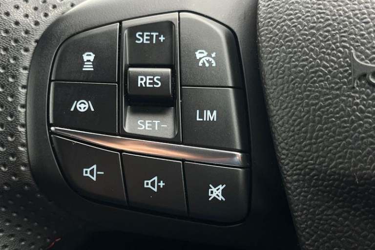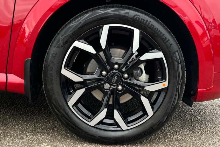 Driver impairment monitor, Emergency call service, Ford easy fuel, Full digital 12.3 instrument cluster, Lane keeping aid with lane departure warning, Power assist steering, Power start button, Rear parking sensor, Selectable drive modes(Normal, sport, Eco, trail, slippery), Speed sign recognition, Automatic headlights with auto high beam, Automatic rain sensing wipers, Front fog lamps, LED daytime running lights, LED rear lamps, Power foldable heated door mirrors with puddle lamps, Privacy glass to side rear windows and tailgate glass, Quickclear heated windscreen, Rear side wing doors, Rear wiper, ST-Line body styling kit with unique grille, Third brake light, 3 seat bench in 2nd row, Centre console with armrest and stowage, Ford megabox extended bootspace, Front and rear head restraints, Front floor mats, Manual 4 way driver seat adjust with lumbar adjustment, Manual 4 way passenger seat with lumbar seat adjustment, Sensico partial premium upholstery, Single front passenger seat, ST-Line flat bottomed sensico leather steering wheel with leather handbrake and aluminium gear knob, Wireless charging pad with electronic air temperature control (EATC), 3 rear seatbelts, Child safety lock, Electronic stability control (ESC) and hill start assist, Pedestrian/cyclist detection & post-collision braking, Pre collision assist system, Tyre pressure monitoring system (TPMS)