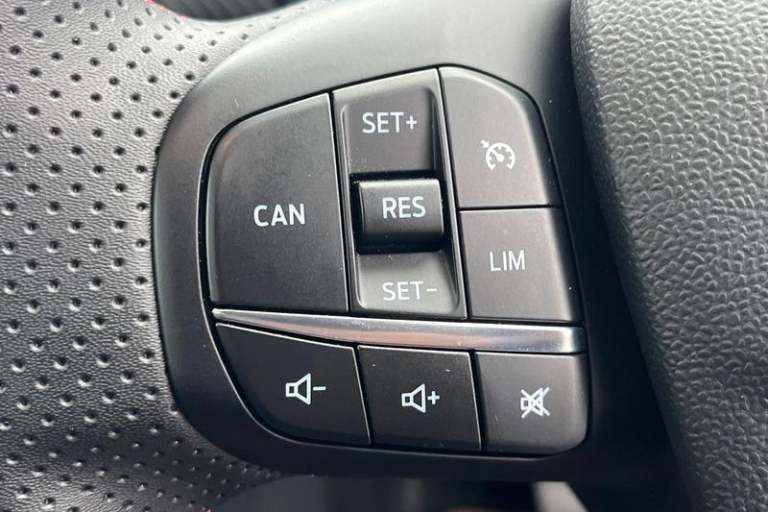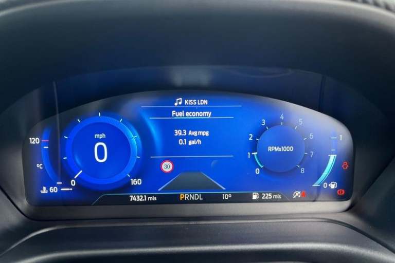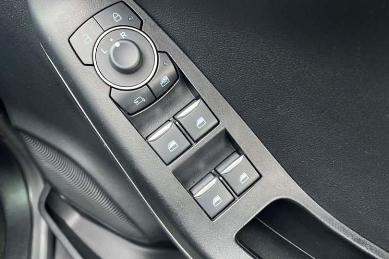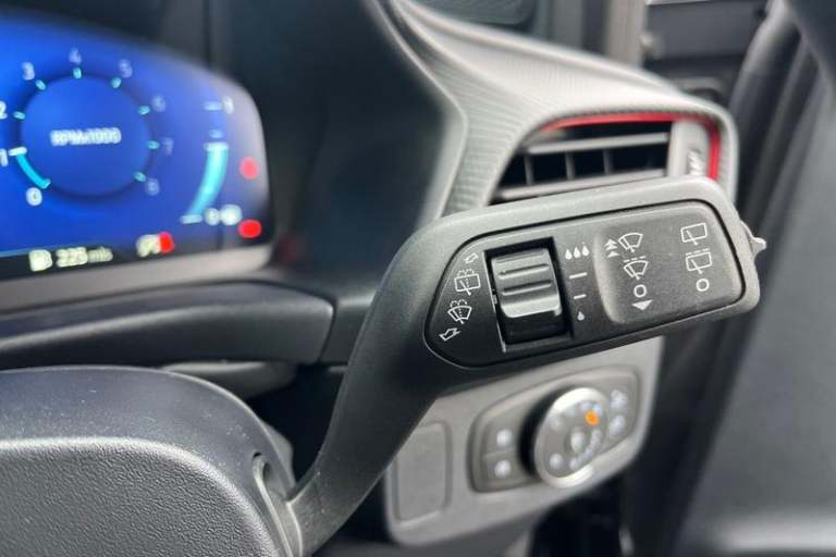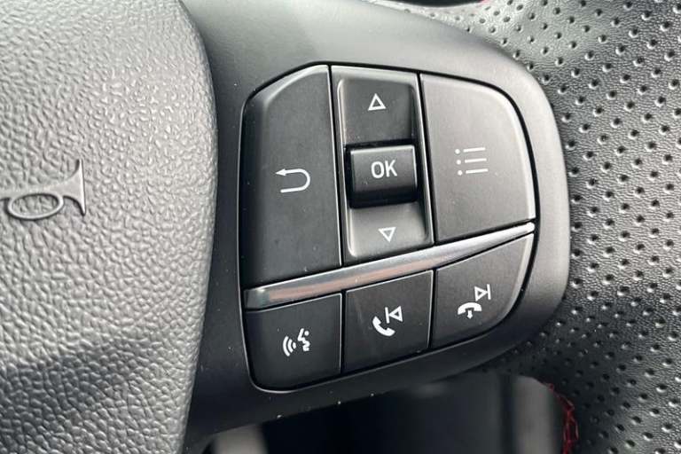 Driver impairment monitor, Emergency call service, Ford easy fuel, Full digital 12.3 instrument cluster, Lane keeping aid with lane departure warning, Power assist steering, Power start button, Rear parking sensor, Selectable drive modes(Normal, Eco, Sport, Slippery and Trail), Speed sign recognition, Automatic headlights with auto high beam, Automatic rain sensing wipers, Front fog lamps, LED daytime running lights, LED rear lamps, Power foldable heated door mirrors with puddle lamps, Privacy glass to side rear windows and tailgate glass, Quickclear heated windscreen, Rear side wing doors, Rear wiper, ST-Line body styling kit with unique grille, Third brake light, 3 seat bench in 2nd row, Centre console with armrest and stowage, Ford megabox extended bootspace, Front and rear head restraints, Front floor mats, Manual 4 way driver seat adjust with lumbar adjustment, Manual 4 way passenger seat with lumbar seat adjustment, Sensico partial premium upholstery, Single front passenger seat, ST-Line flat bottomed sensico leather steering wheel with leather handbrake and aluminium gear knob, Wireless charging pad with electronic air temperature control (EATC), 3 rear seatbelts, Child safety lock, Electronic stability control (ESC) and hill start assist, Pedestrian/cyclist detection & post-collision braking, Pre collision assist system, Tyre pressure monitoring system (TPMS)