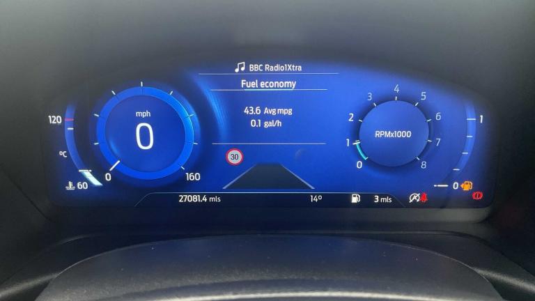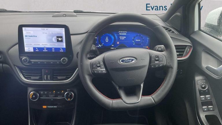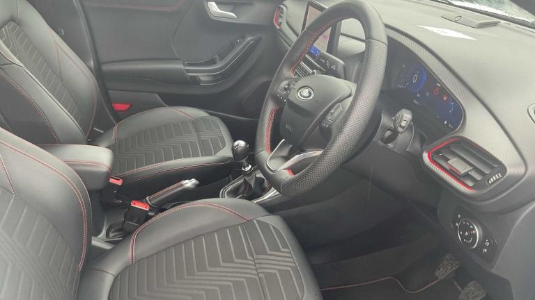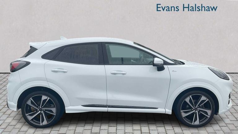 19in Alloy Wheels - 5-Spoke - Matt Black Machined Finish, Frozen White, Partial Premium Sensico - Black with Red Stitching, 18in Alloy Wheels - 5-Spoke - Matt Black Machined Finish, Acoustic Laminated Windscreen, Active Grille Shutter, Ecoboost Hybrid Tailgate Badge, Electric Windows - Front and Rear, Front Bumper - Unique ST-Line Sport Design - Body Colour, Large Rear Spoiler - Body Colour with Centre High Mounted Stop Light, Locking Wheel Nuts, Lower Bodyside Moulding - Body Colour, Power-Foldable Heated Door Mirrors with Puddle Lamps, Privacy Glass, Puma Badge, Quickclear Heated Windscreen, Rear Bumper Body Colour - Diffuser, ST-Line Badge, ST-Line Body Styling Kit, Tailgate - Manual, Tyre Inflation Kit, ABS - Anti-lock Braking System, ESC - Electronic Stability Control and Hill Start Assist, Emergency Brake Warning - Automatic Hazard Warning Lights, First Aid Kit Strap, Lane Keeping Aid with Lane Departure Warning, Post Collision Braking, Remote Central-Double Locking, Thatcham Alarm, Traction Control and Emergency Braking Assistance, Automatic Headlights with Rain-Sensing Wipers and Auto High Beam, B&O Premium Audio System and Ford SYNC 3 Navigation, Cruise Control with Intelligent Speed Assist, Front Fog Lights, Intelligent Speed Assistance, LED rear lights, Power Steering, Pre-Collision Assist with Autonomous Emergency Braking and Pedestrian-Cyclist Detection, Projector Headlamps with LED Daytime Running Lights, Rear Parking Sensors, Selectable Driving Modes - Normal - Eco - Sport - Slippery and Trail, Speed Limiter, Sports Suspension, Trip-Fuel Computer, Tyre Pressure Monitoring System - TPMS, Wireless Charging Pad with Electronic Air Temperature Control EATC, Automatic Dimming Rear View Mirror, Carbon-Look Interior Deco Spears, Centre Console - Premium with Openable Stowage Area with USB Connectivity - 2 Cupholders and 12v Power Point, Courtesy Lights - Ambient LED Courtesy Lighting - Single Colour, Drivers Manual 4-Way Seat Adjustment with Manual Lumbar Adjust, Electronic Air Temperature Control - EATC, Ford MegaBox Extended Bootspace, Ford Power Starter Button, Front Floor Mats, Front Seats - Sports Style, Full Digital 12.3in Instrument Cluster, Gear Knob - Aluminium, Handbrake - Black Sensico Trimmed with Stitching, Headliner - Deluxe, Instrument Panel - High Level, Passenger 4-Way Seat with Lumbar Adjustment, Rear Seats - 2-Way Head Restraint Up-Down, Rear Seats - Second Row 60-40 Folding Seats, Restrain Device Pack, ST-Line Flat-Bottomed