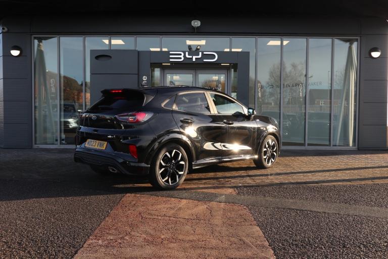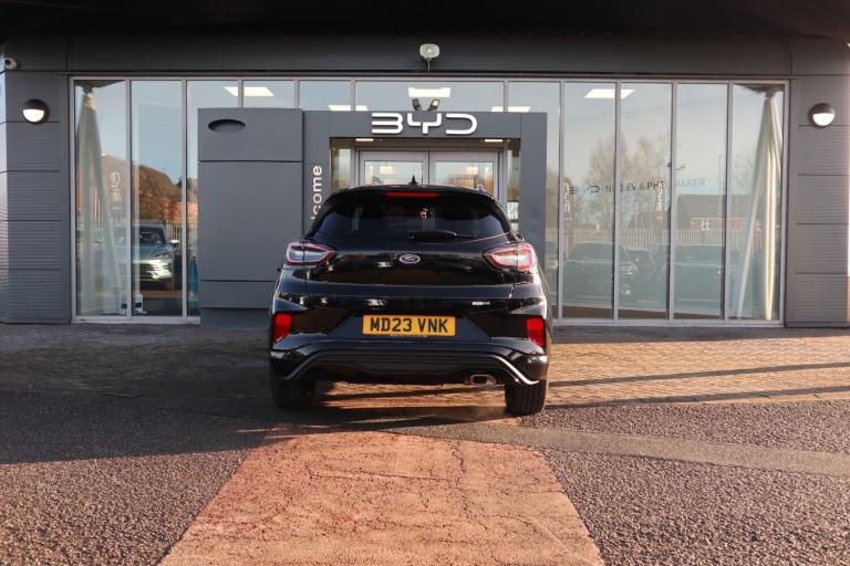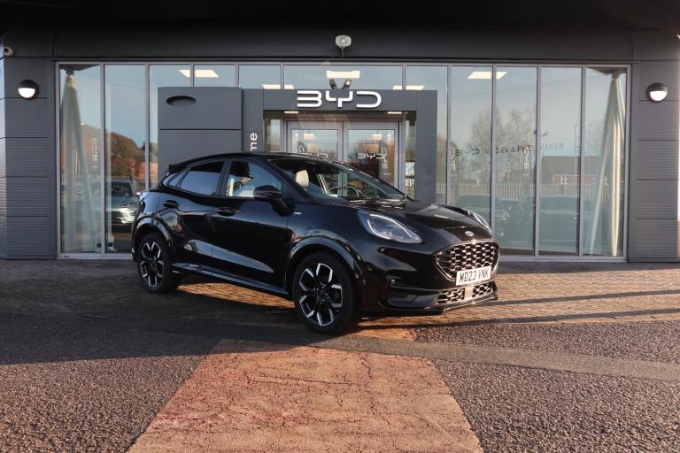 .This 2023 Ford Puma ST-Line X boasts exceptionally low mileage for its age, having covered just 11,792 miles. This stylish compact SUV features a responsive 1.0 litre petrol hybrid engine, aligning with Euro 6 emissions standards. The ST-Line X trim level ensures a well equipped and sporty driving experience, making it a desirable choice for those seeking both performance and efficiency. The Ford Puma is designed to impress with its fuel economy, achieving an impressive 52 miles per gallon, which is a significant advantage over many other vehicles in its class. Furthermore, its low CO2 emissions contribute to a more environmentally conscious drive. This combination of excellent fuel efficiency and reduced emissions, coupled with its low mileage and sporty ST-Line X specification, positions this Puma as a standout option..Driver impairment monitor, Emergency call service, Ford easy fuel, Full digital 12.3'' instrument cluster, Lane keeping aid with lane departure warning, Power assist steering, Power start button, Rear parking sensor, Selectable drive modes(Normal, sport, Eco, trail, slippery), Speed sign recognition, Sport suspension, Automatic headlights with auto high beam, Automatic rain sensing wipers, Front fog lamps, LED daytime running lights, LED rear lamps, Power foldable heated door mirrors with puddle lamps, Privacy glass to side rear windows and tailgate glass, Quickclear heated windscreen, Rear side wing doors, Rear wiper, ST-Line body styling kit with unique grille and large body colour rear spoiler, Third brake light, 3 seat bench in 2nd row, Centre console with armrest and stowage, Ford megabox extended bootspace, Front and rear head restraints, Front floor mats, Manual 4 way driver seat adjust with lumbar adjustment, Manual 4 way passenger seat with lumbar seat adjustment, Sensico partial premium upholstery, Single front passenger seat, ST-Line flat bottomed sensico leather steering wheel with leather handbrake and aluminium gear knob, Wireless charging pad with electronic air temperature control (EATC), B&O Premium Audio system + Ford SYNC 3 navigation pack - Puma, 3 rear seatbelts, Child safety lock, Electronic stability control (ESC) and hill start assist, Pedestrian/cyclist detection & post-collision braking, Pre collision assist system, Tyre pressure monitoring system (TPMS), Thatcham alarm, Carbon look interior deco spears