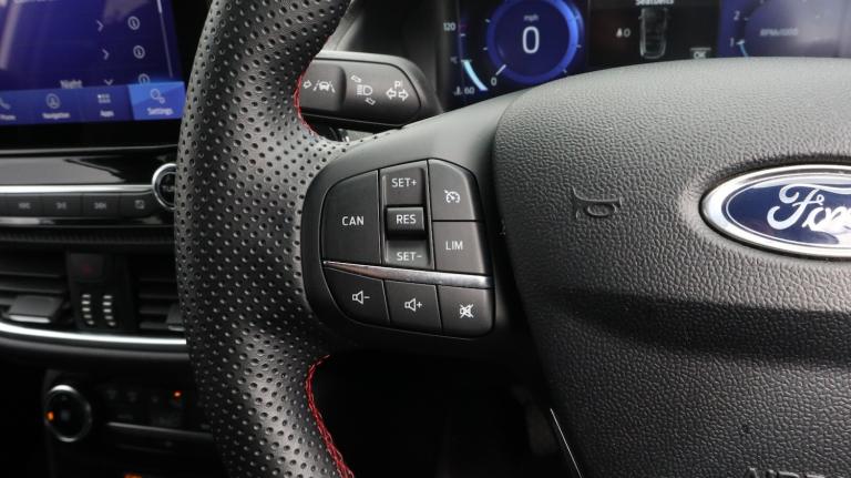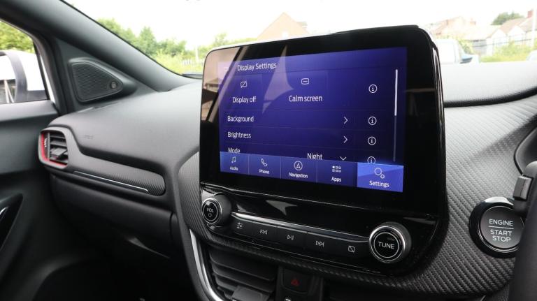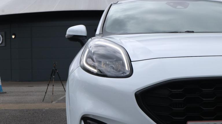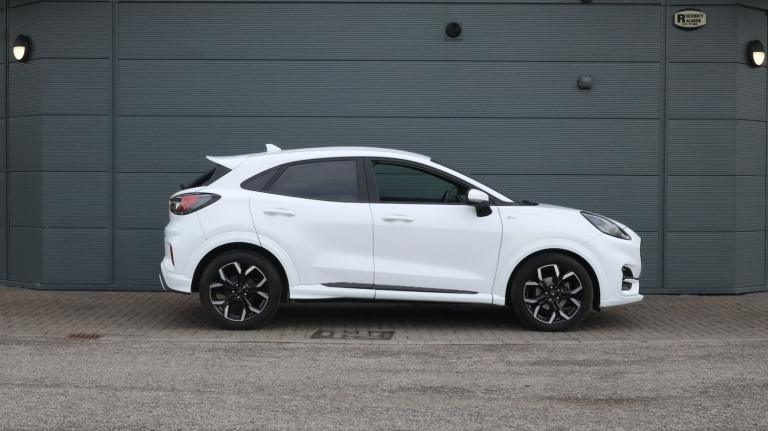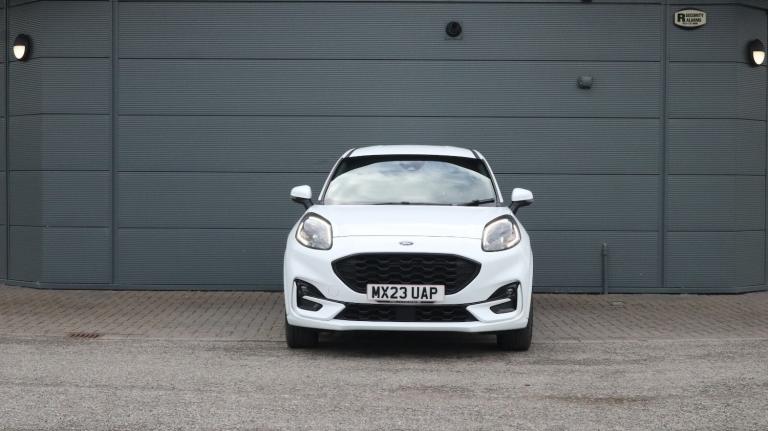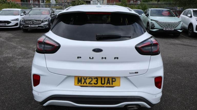 .With only 7595 miles on the clock, this 2023 Ford Puma ST-Line X T ST-Line X offers an appealing opportunity. As a Ford Puma, this model combines practicality with stylish design. It is equipped with a 1.0L Petrol Hybrid engine and complies with Euro 6 emission standards. The car's roadworthiness is confirmed with an MOT valid until April 2026, offering peace of mind. The partial service history includes a service performed at 7595 miles on 20th May 2025, documenting its upkeep. This particular model stands out with its fuel economy, achieving around 52 mpg, meaning fewer trips to the petrol station compared to similar vehicles. The low CO2 emissions also mean it is a more environmentally conscious choice..Driver impairment monitor, Emergency call service, Ford easy fuel, Full digital 12.3'' instrument cluster, Lane keeping aid with lane departure warning, Power assist steering, Power start button, Rear parking sensor, Selectable drive modes(Normal, sport, Eco, trail, slippery), Speed sign recognition, Sport suspension, Automatic headlights with auto high beam, Automatic rain sensing wipers, Front fog lamps, LED daytime running lights, LED rear lamps, Power foldable heated door mirrors with puddle lamps, Privacy glass to side rear windows and tailgate glass, Quickclear heated windscreen, Rear side wing doors, Rear wiper, ST-Line body styling kit with unique grille and large body colour rear spoiler, Third brake light, 3 seat bench in 2nd row, Centre console with armrest and stowage, Ford megabox extended bootspace, Front and rear head restraints, Front floor mats, Manual 4 way driver seat adjust with lumbar adjustment, Manual 4 way passenger seat with lumbar seat adjustment, Sensico partial premium upholstery, Single front passenger seat, ST-Line flat bottomed sensico leather steering wheel with leather handbrake and aluminium gear knob, Wireless charging pad with electronic air temperature control (EATC), B&O Premium Audio system + Ford SYNC 3 navigation pack - Puma, 3 rear seatbelts, Child safety lock, Electronic stability control (ESC) and hill start assist, Pedestrian/cyclist detection & post-collision braking, Pre collision assist system, Tyre pressure monitoring system (TPMS), Thatcham alarm, Carbon look interior deco spears